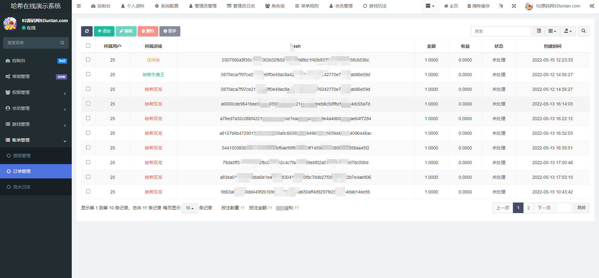 后端为fastadmin框架开发,多语言哈希竞猜,前后端分离,脚本齐全,带搭建说明。已修复bug等