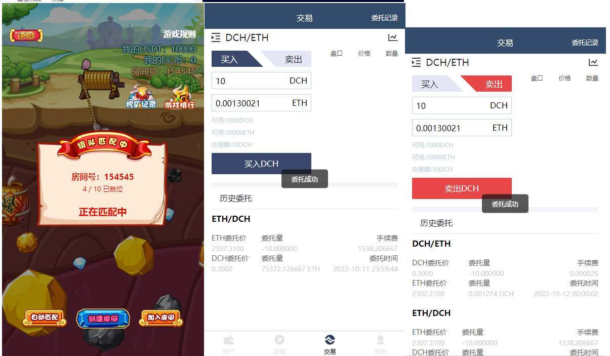 撤单:只要游戏未开始,允许撤单。房间抵扣:用户开设房间需先冻结一局的DC币,结束后扣除,不成局解冻DC币;一局10DC币可抵扣12次