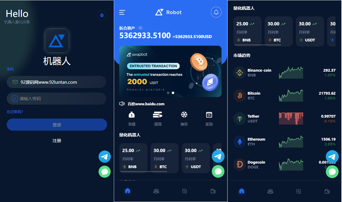五语言BTC虚拟币质押投资理财系统源码,定期存币收益理财,加密货币机器人量化交易,内附搭建教程