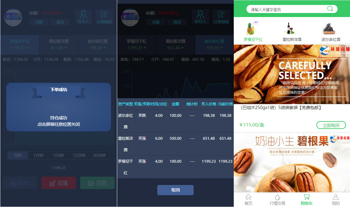 好友开发分享的产品,从未市面出现过,基本可以说是独一份的东西了,现货交易+点位盘微交易商城多合一的版本,功能非常全面。