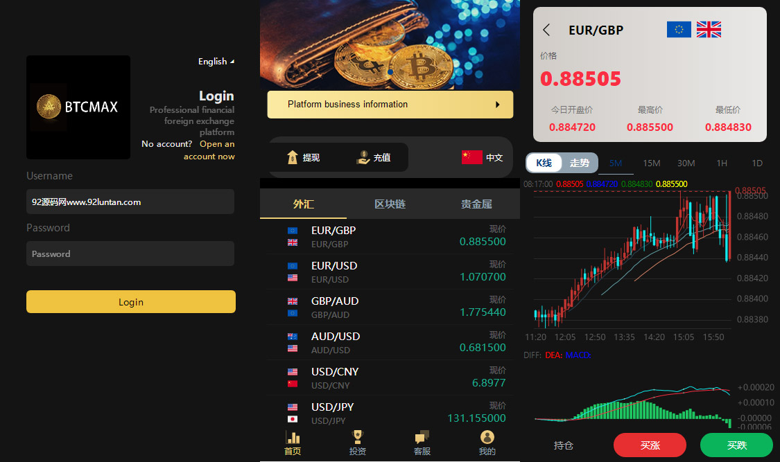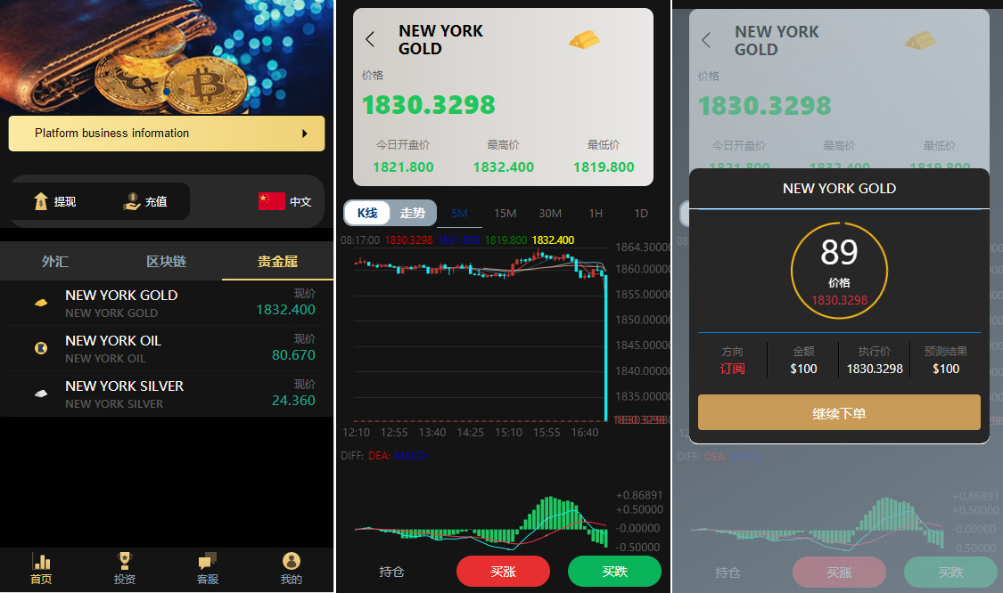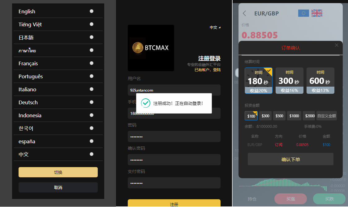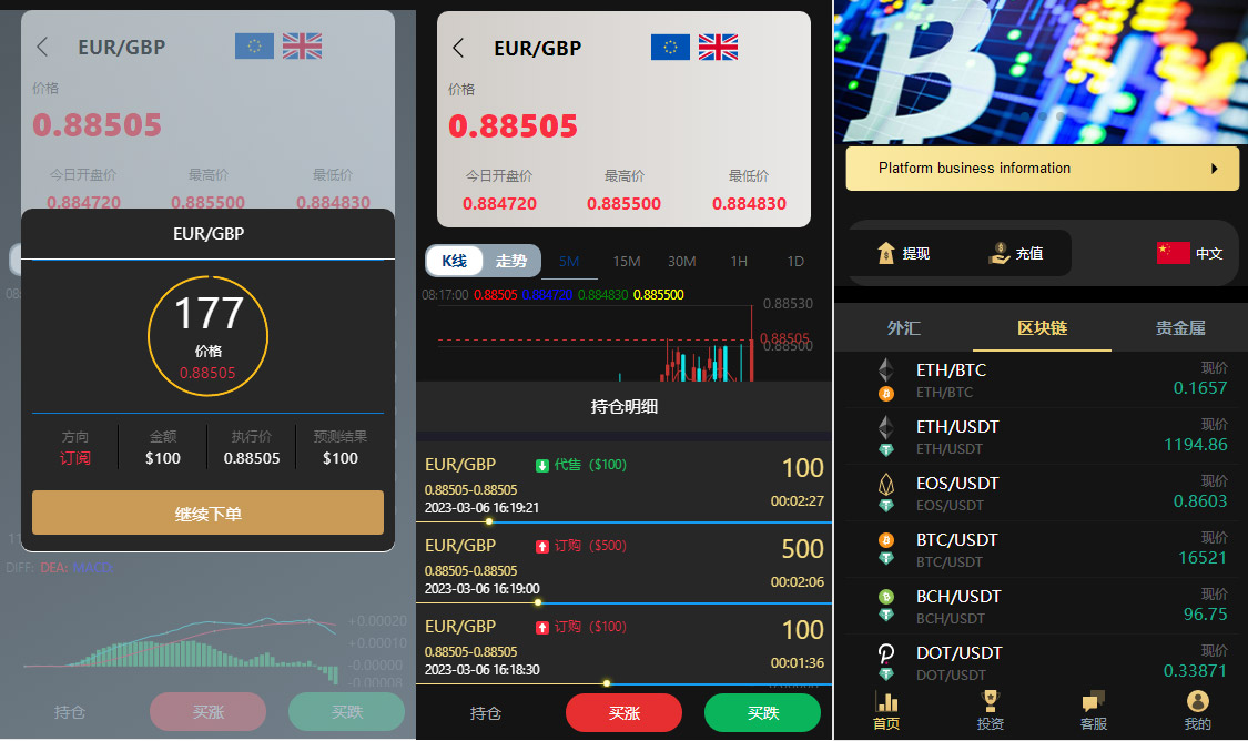 多语言外汇虚拟币贵金属三合一/时间盘/点位盘/微盘源码
