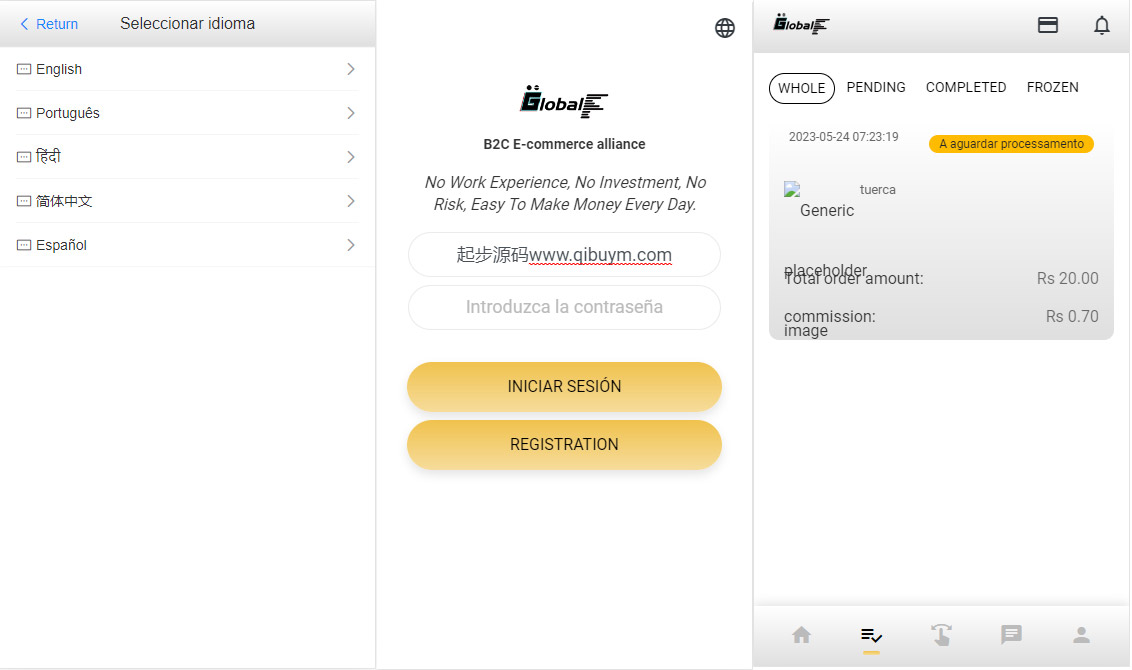 源码是别人全新定制的抢单ui,源码默认是七种语言,只是前端被注释了