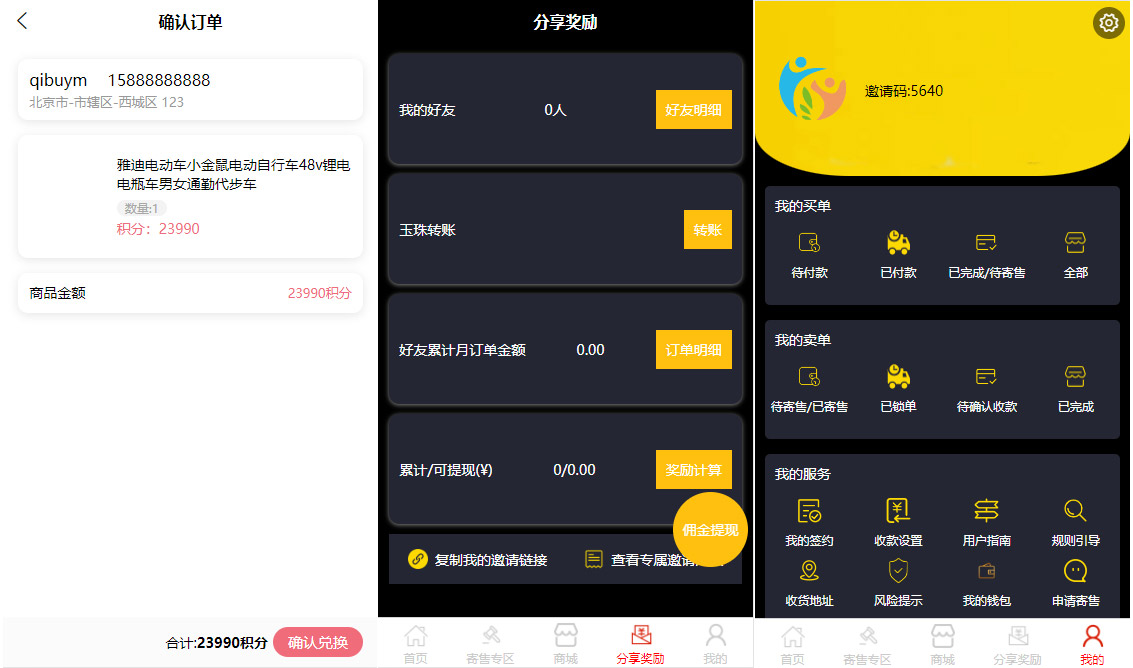 ⑦、玩家提货可获得商品相应价值积分,可在积分商城党换商品
