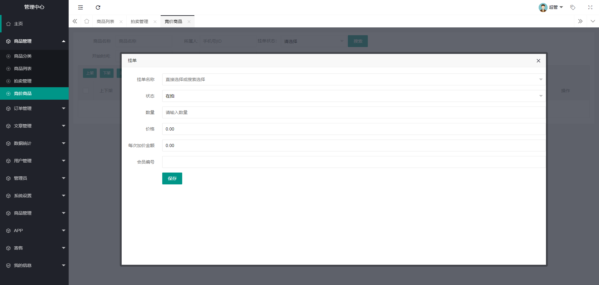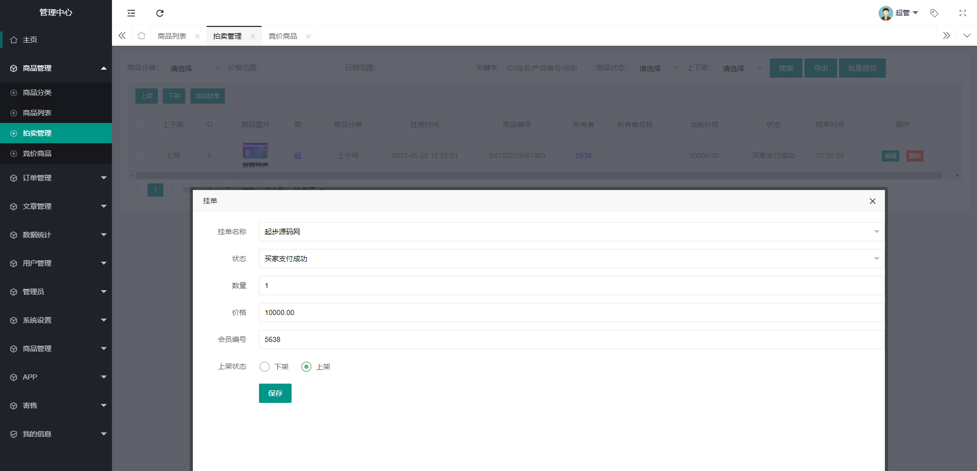 ①、后台可添加商品进行挂单