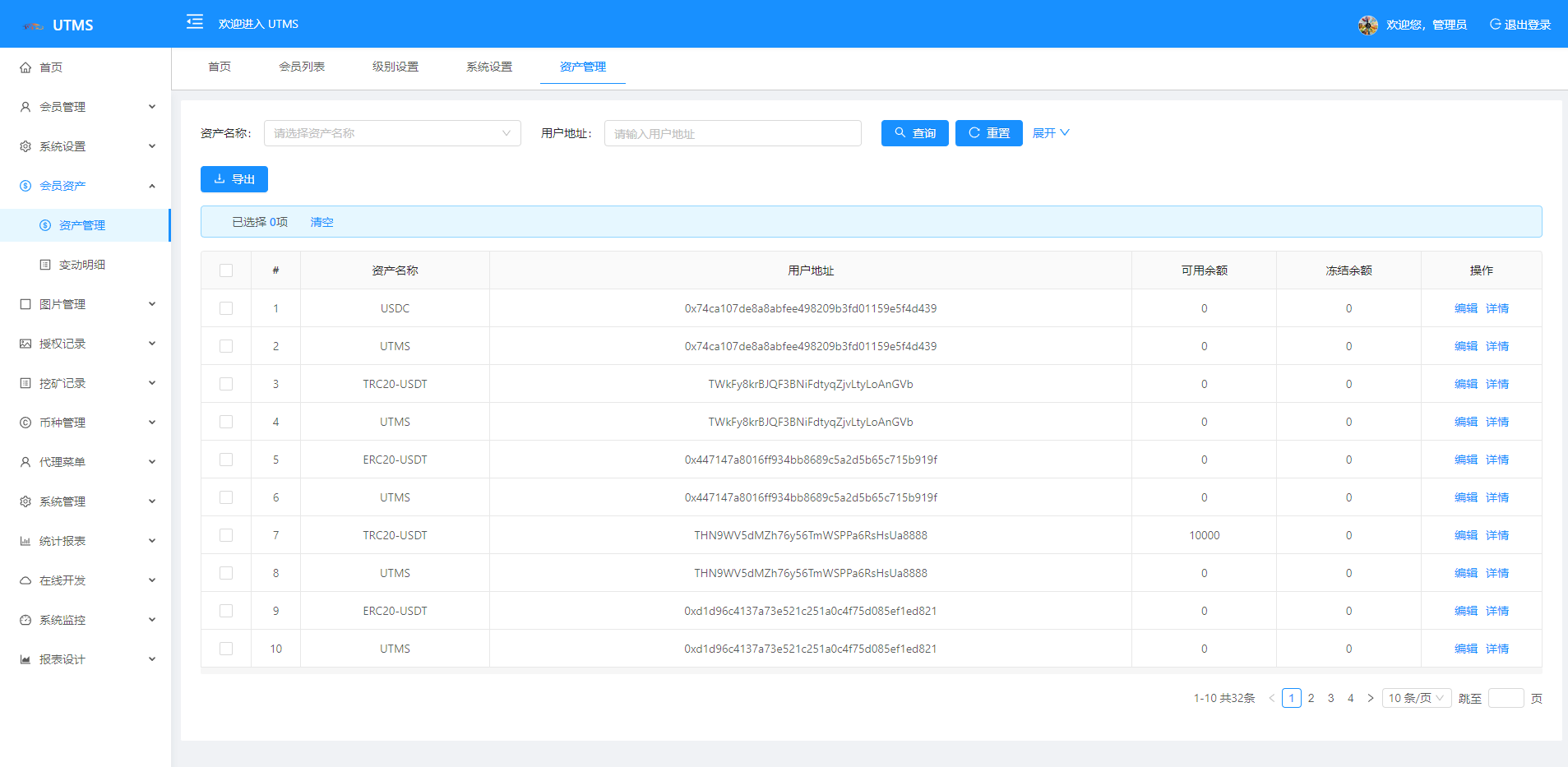 支持ERC20-TRC20-BSC-USDC 七国语言(可二开添加) 可无限开下线代理 平台会员八个等级制 下级三级邀请