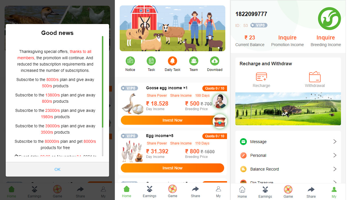 海外新UI理财系统/养鸡养鸭投资系统/投资理财源码/任务图推广注册奖励/内附搭建教程