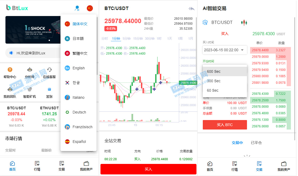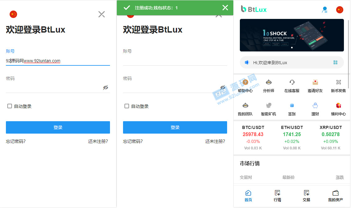 注意此套交易所只有手机端,无PC端,另外亲测k线波动完好,全开源,无加密文件