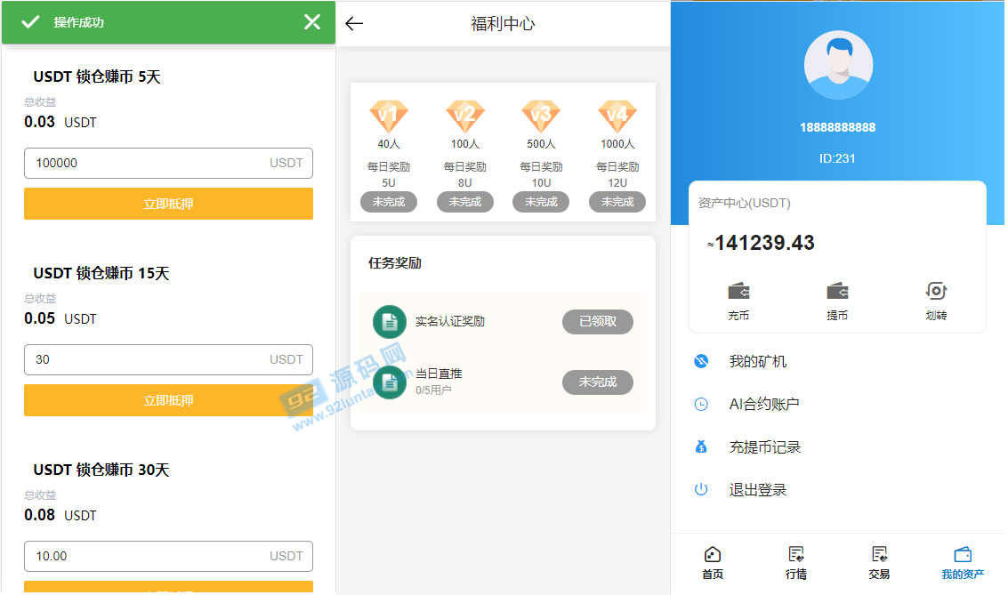 此套交易所系统是Bbank全新二开的,新增诸多功能,智能矿机、质押生息、团队功能、签到功能、另优化二开许多功能