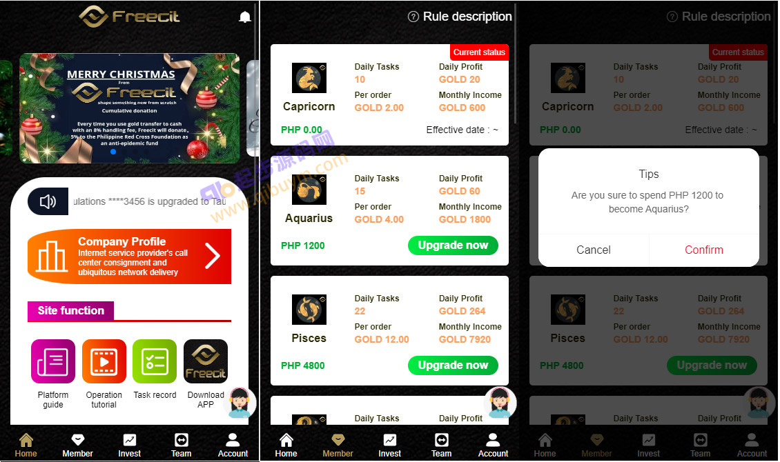 源码前端二开独家UI,新增金币系统,用户完成获得是金币,然后需要兑换成提现货币