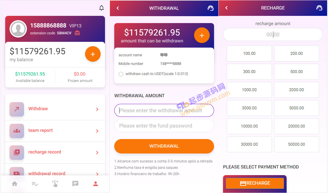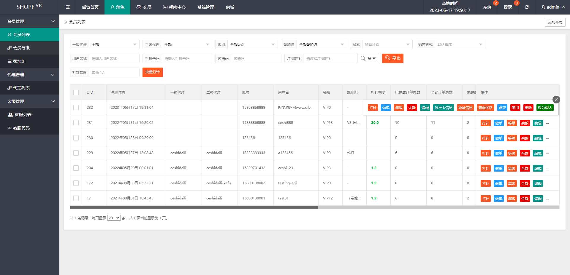 5.三级分销,带客服,等级优先,充值提现优先完美后台查询功能