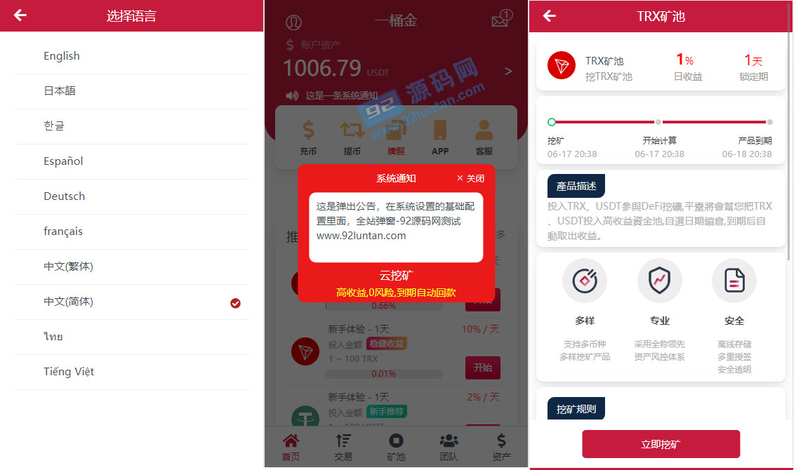 挺好的一套多语言trx理财源码,可惜没有开源代码 ,后门已清!