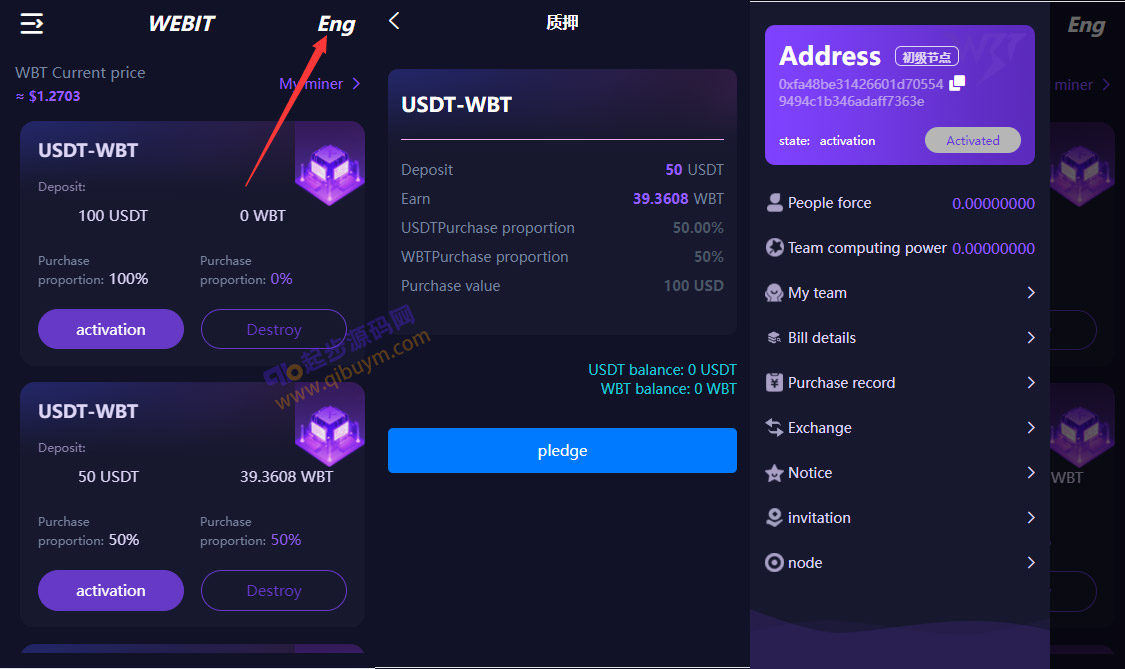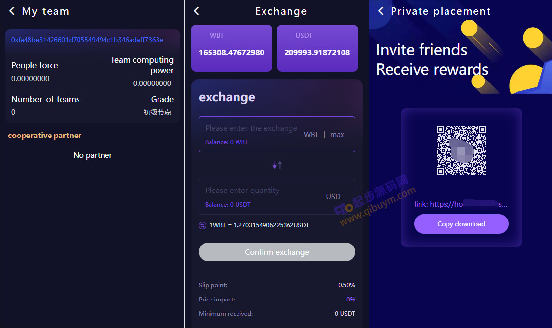 dapp区块链理财系统,支持质押挖矿、支持团队收益,带前端uniapp源码,内附搭建教程