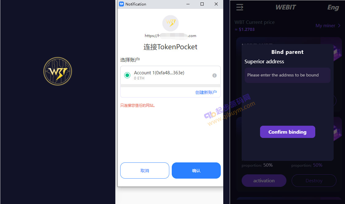 本项目需要在钱包中打开链接,或者浏览器安装钱包拓展插件才可以打开调用
