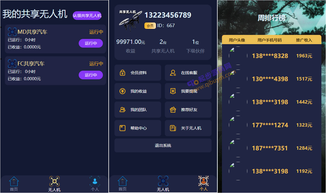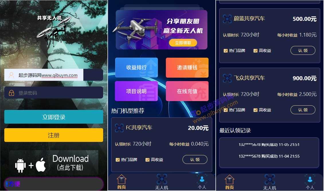 认领共享汽车系统/无人机理财源码/内附搭建教程