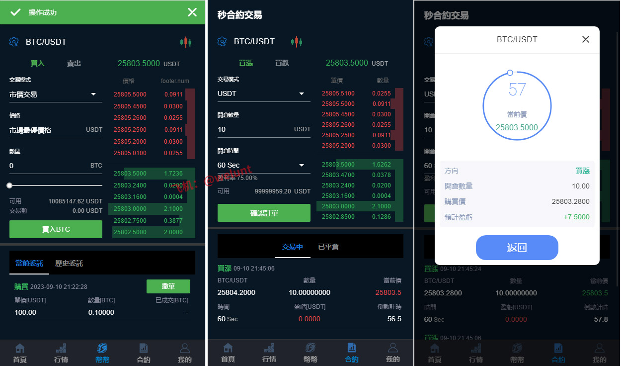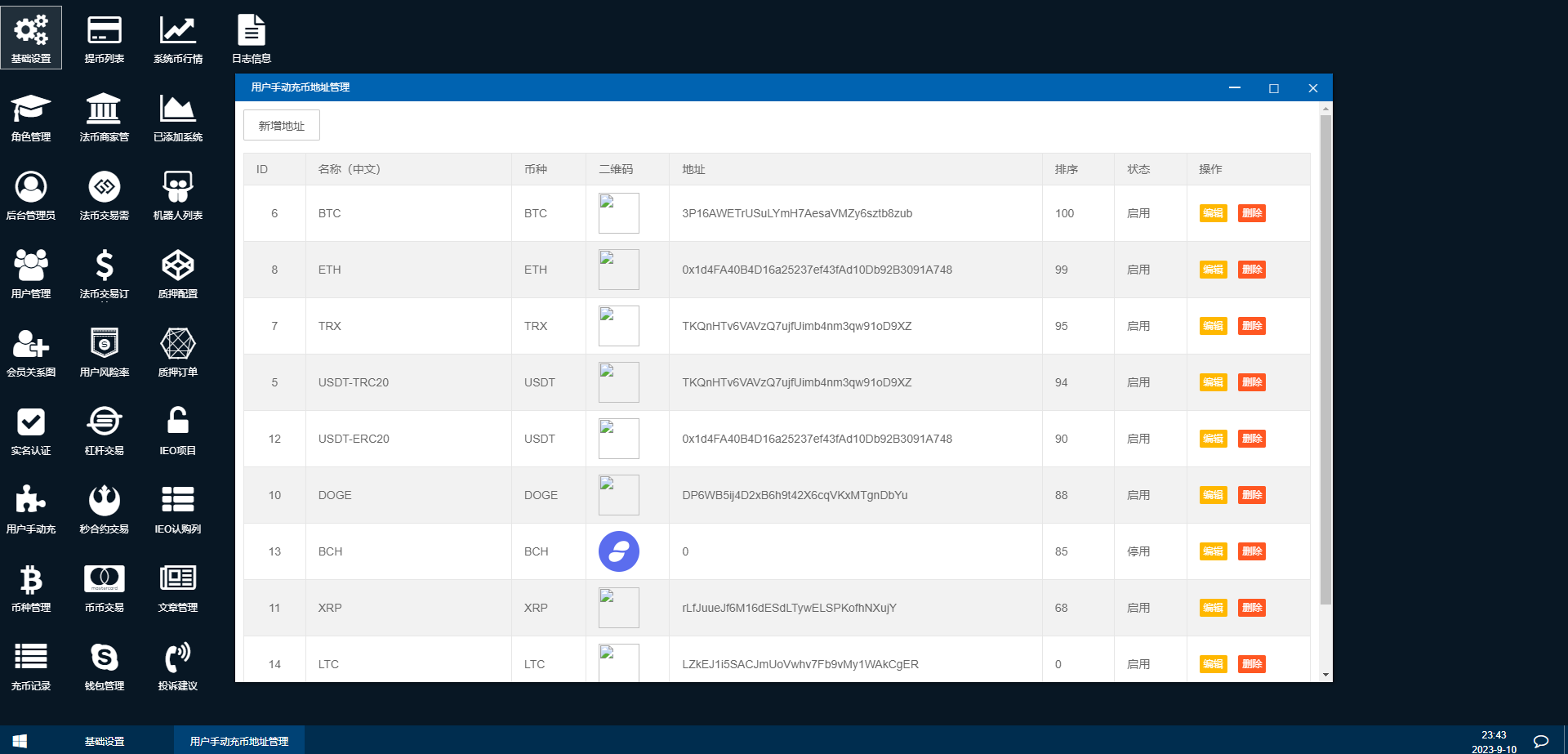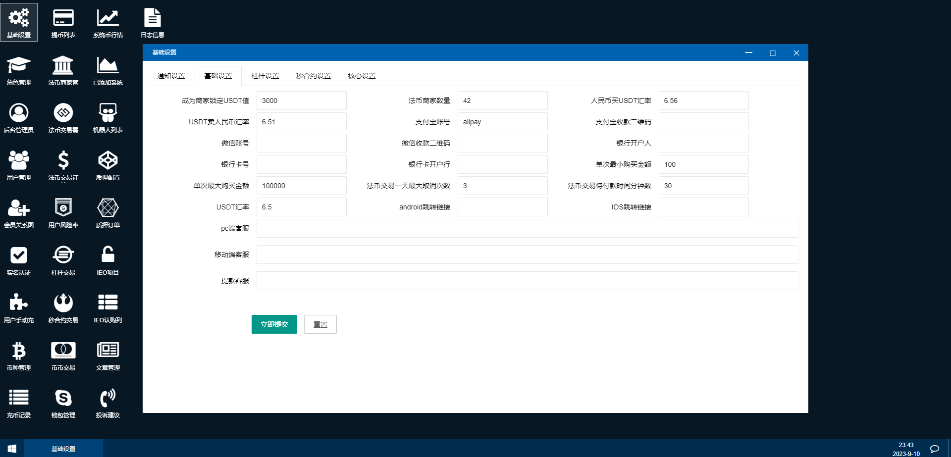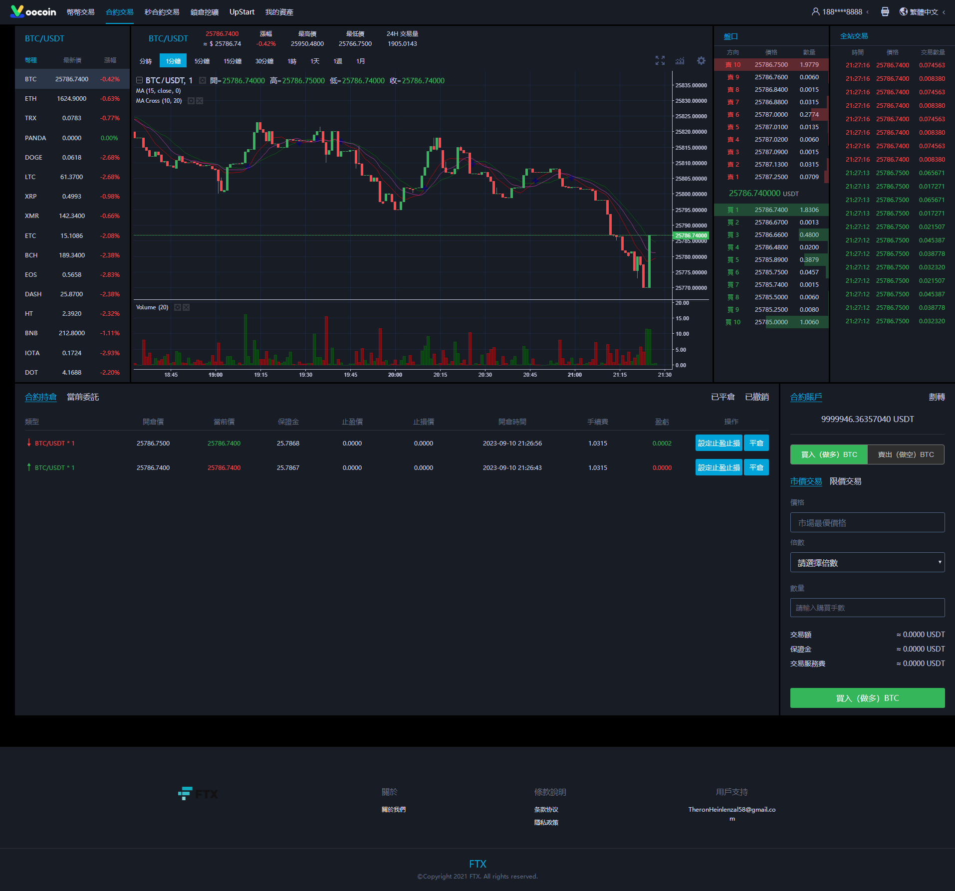 币币交易、合约交易、秒合约交易、锁仓质押、IEO认购、平台币预生成K线(完整机器人),另新增了后台设置充币地址等新功能