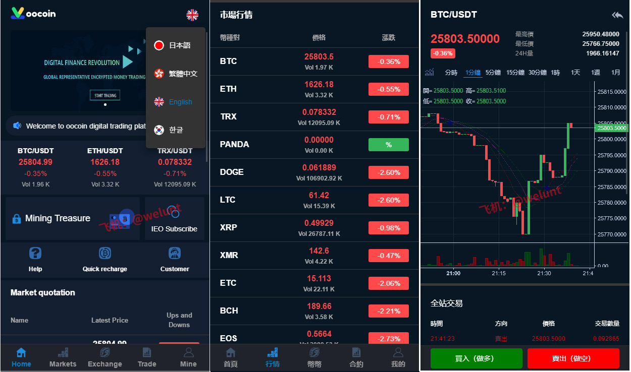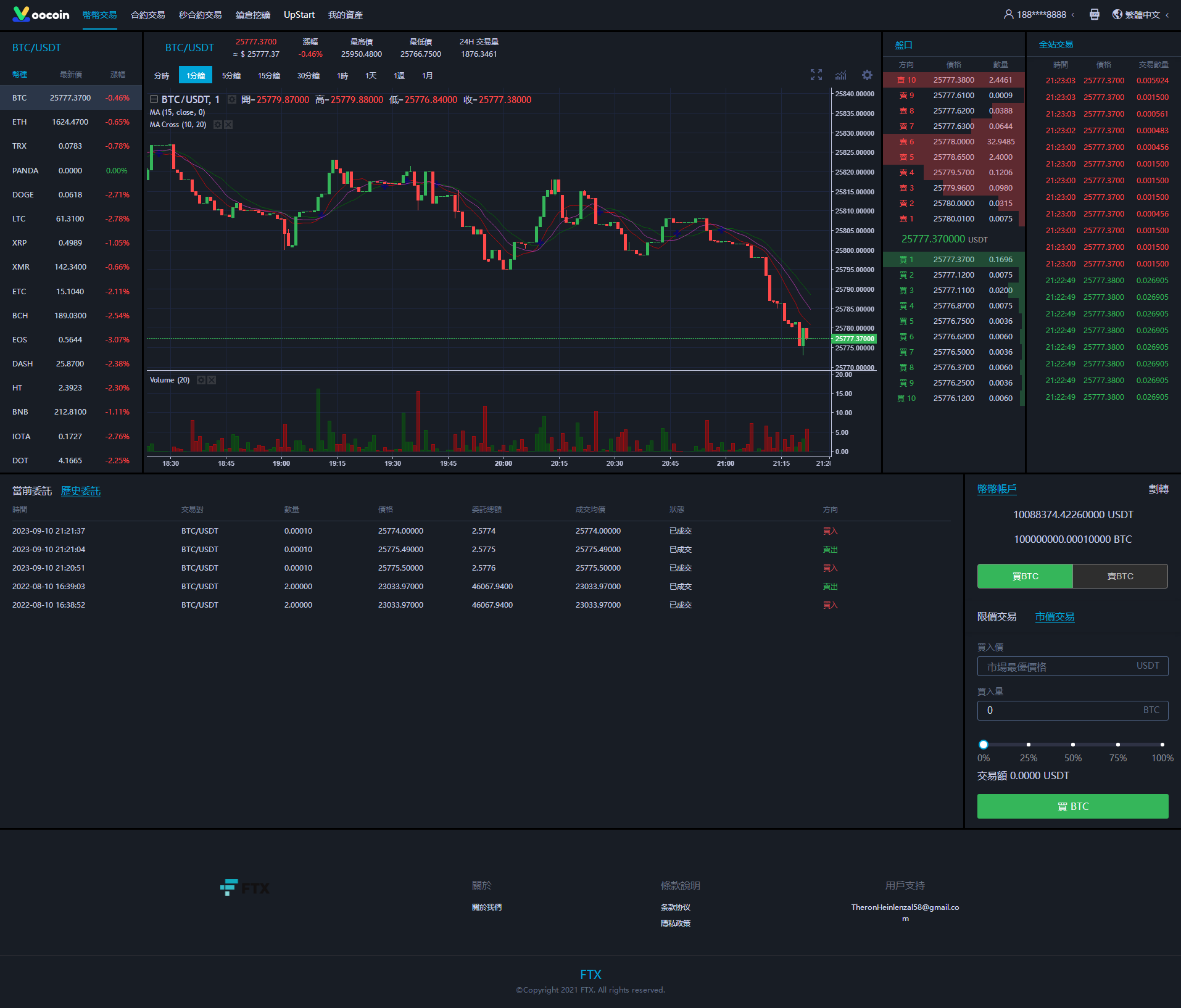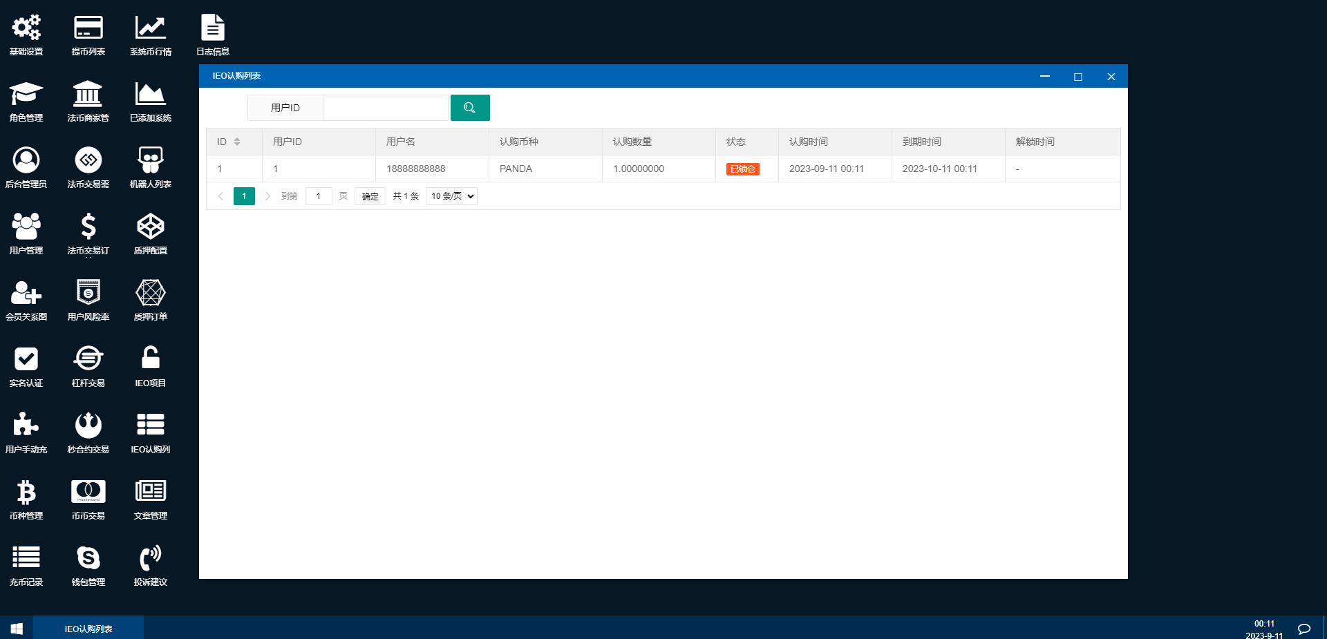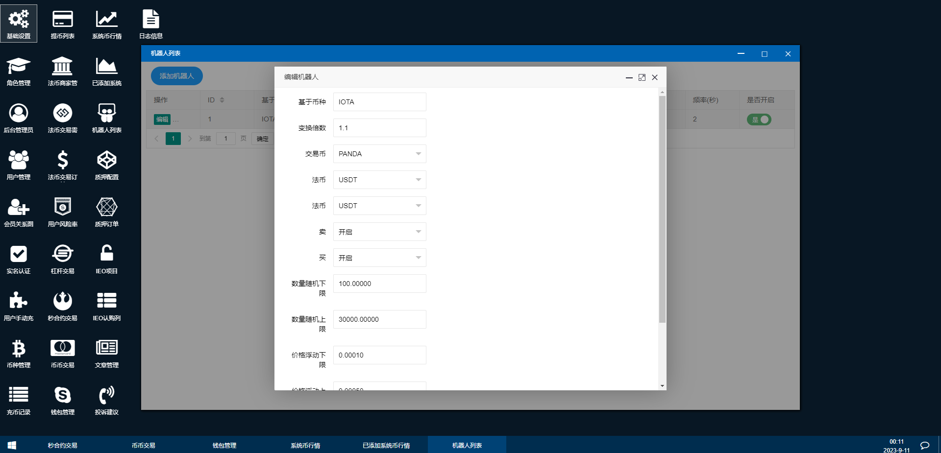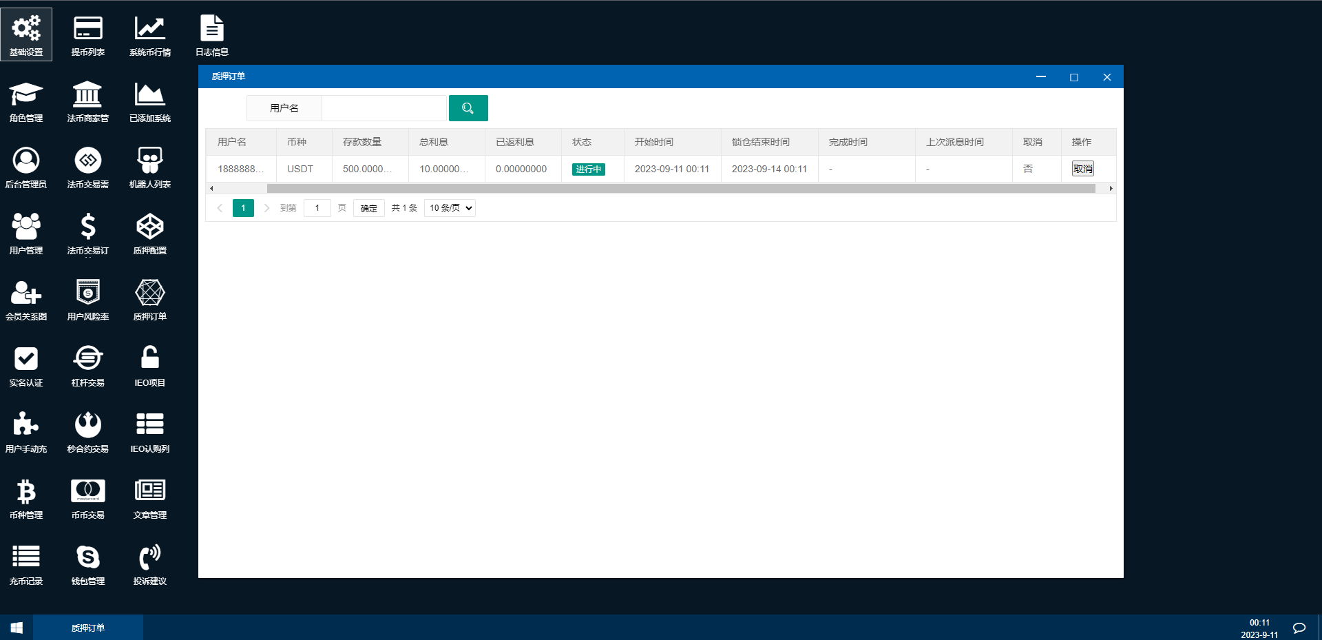 币币交易、合约交易、秒合约交易、锁仓质押、IEO认购、平台币预生成K线(完整机器人),另新增了后台设置充币地址等新功能