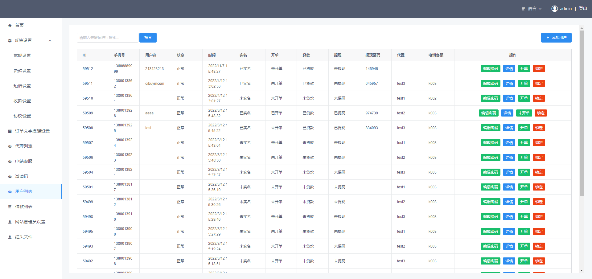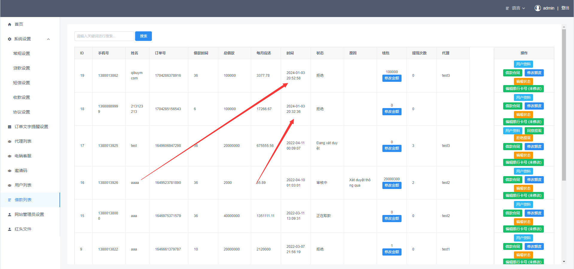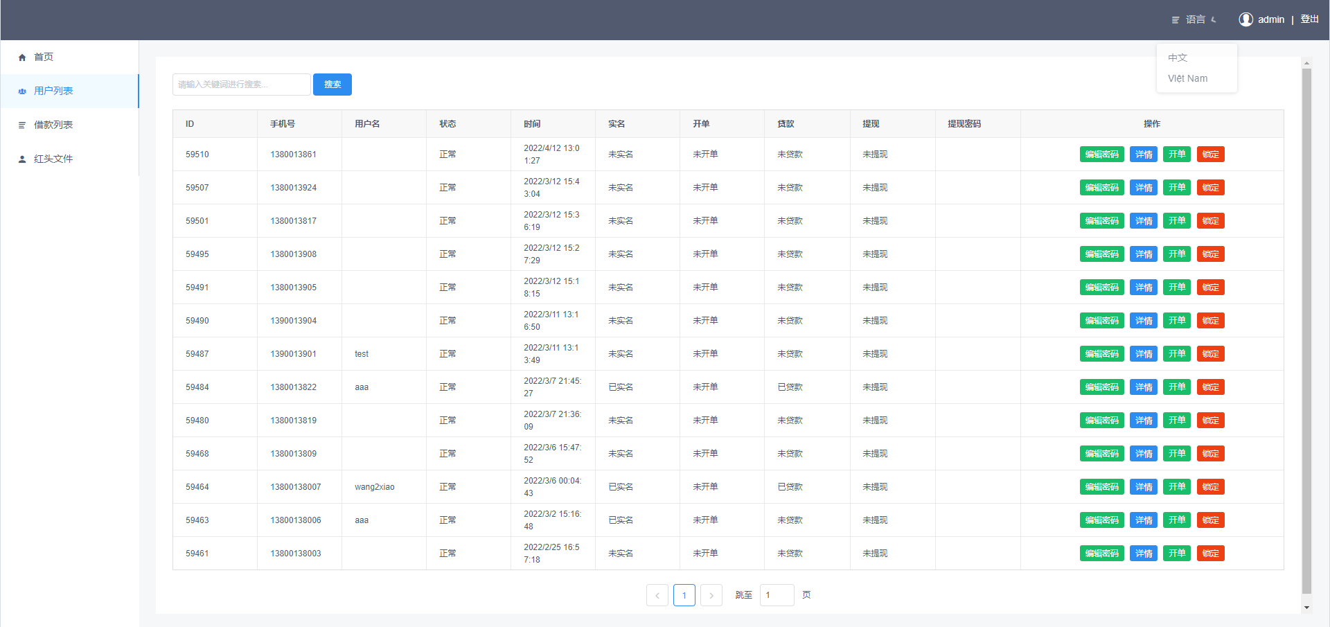 一套比较经典的贷款源码, 后台 代理 前端均为vue源码,后台有中文和越南语,前端是越南语的(另外有英语版的如需可本站搜索下查看)