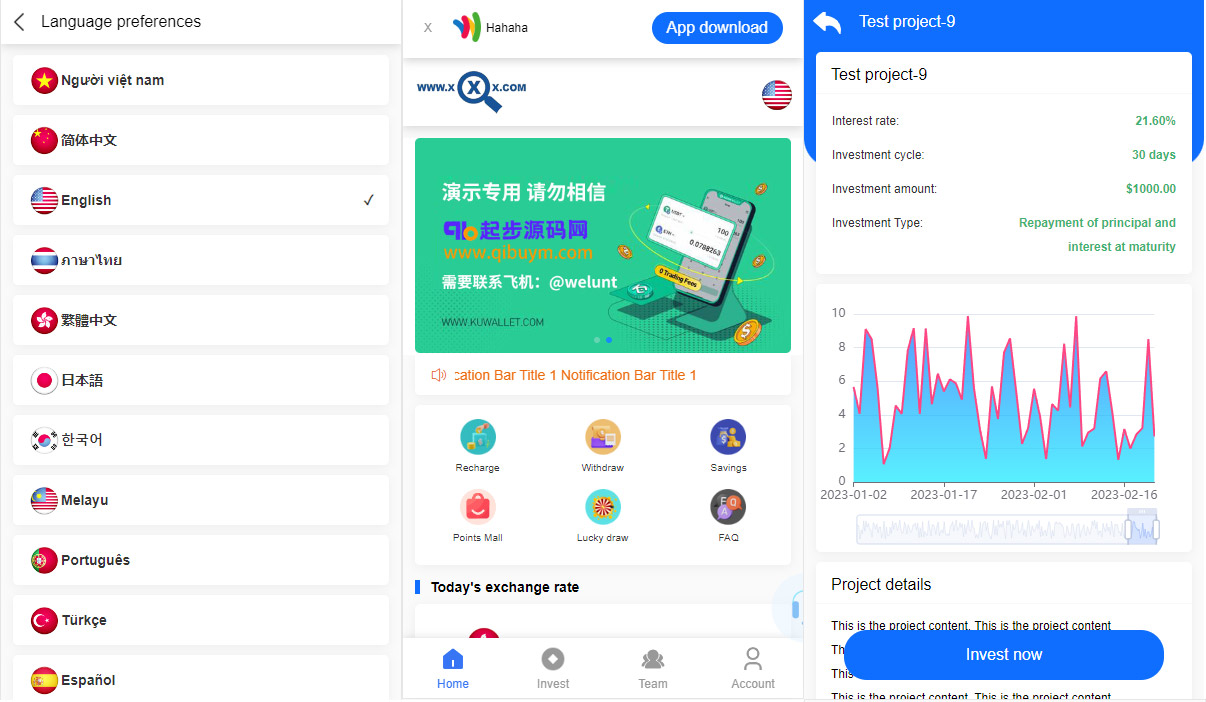 适用:项目投资、影视投资、理财投资、充电宝项目、外汇、基金、国际大宗商品、虚拟货币投资等。