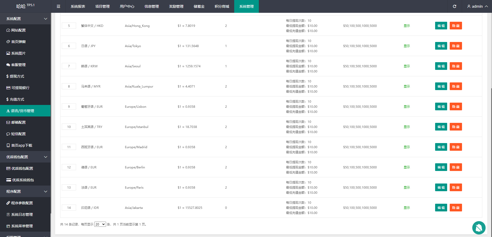 可根据所选语言,显示对应货币资金金额,对接了汇率接口,自动更新汇率