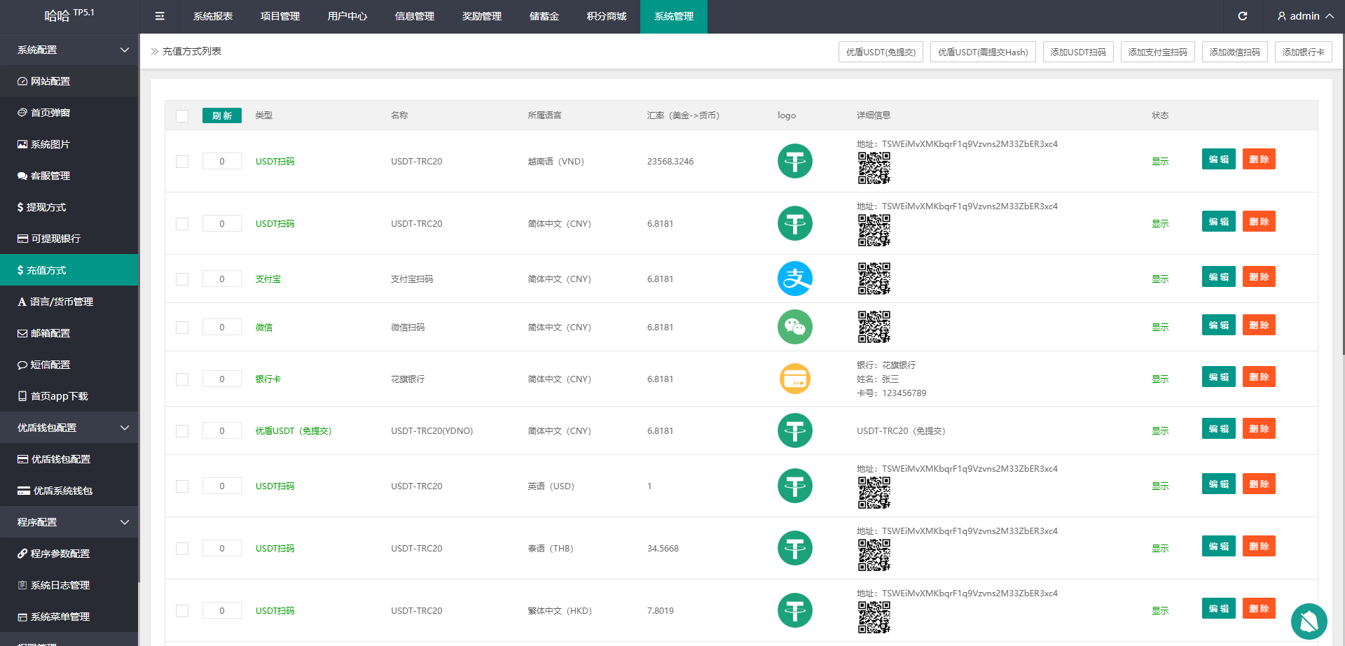 多种充值方式,可做到USDT自动充提,省去人工费用