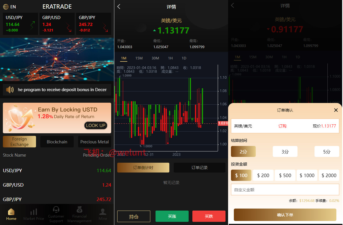 此套海外团队全新开发的微盘系统,支持外汇、区块链、贵金属