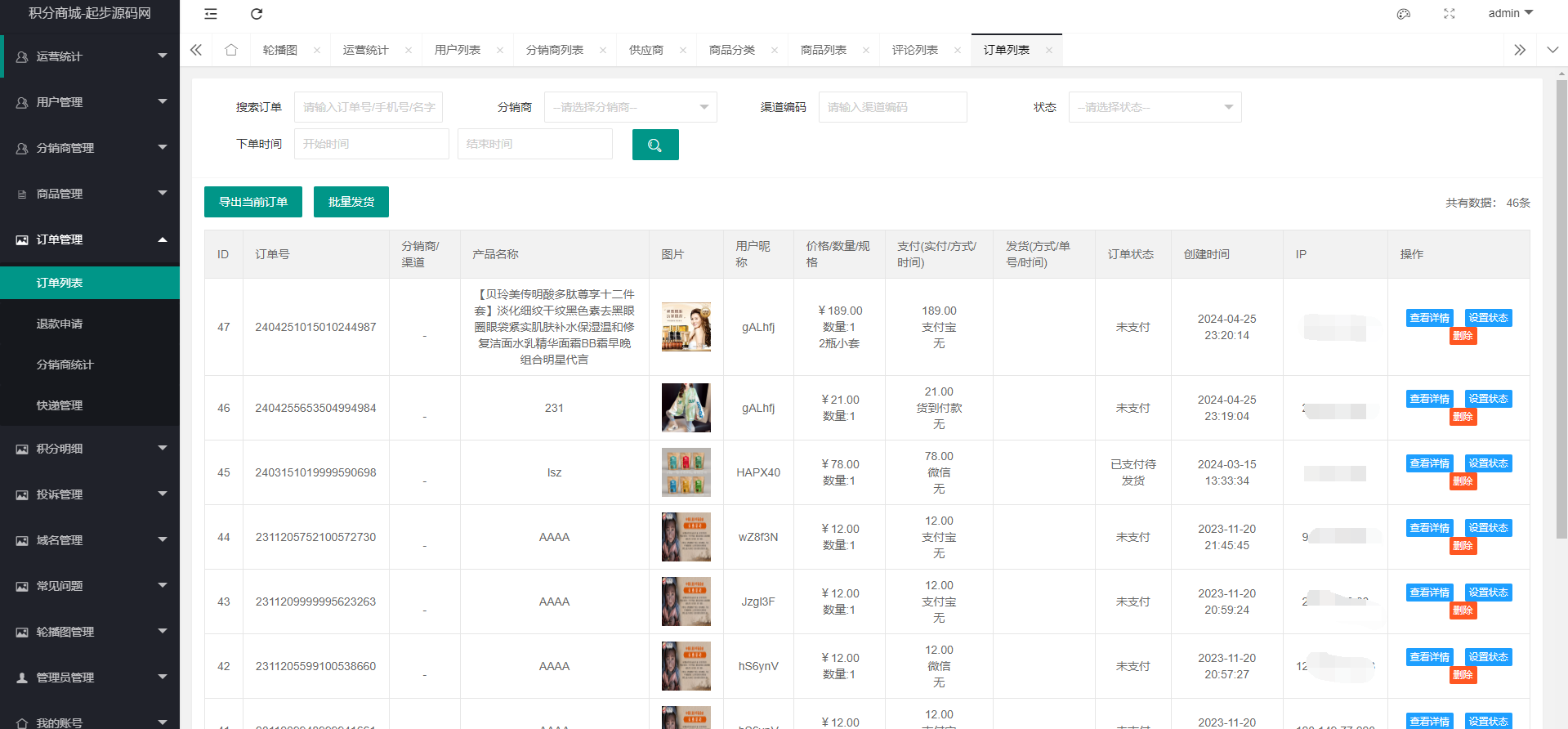 前后端是分离的,带支付接口