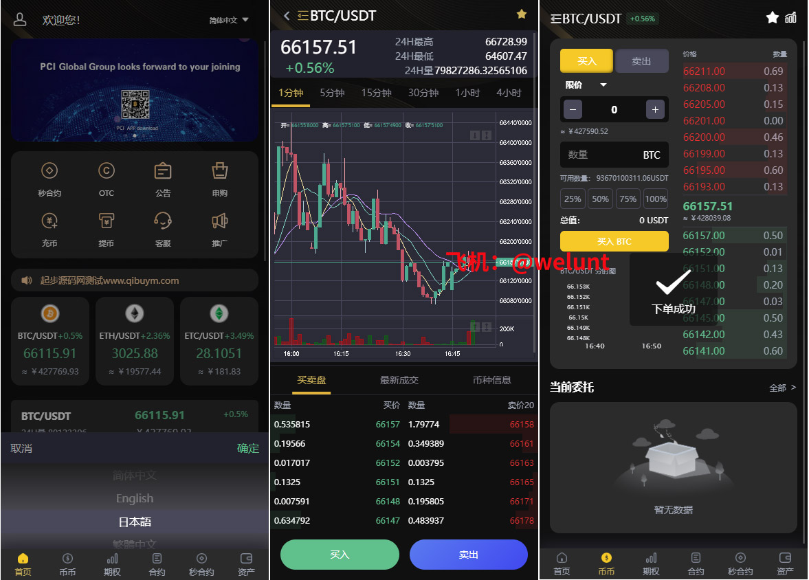 海外多语言交易所系统/15国语言交易所/OTC/币币/申购/期权/秒合约/永续合约交易