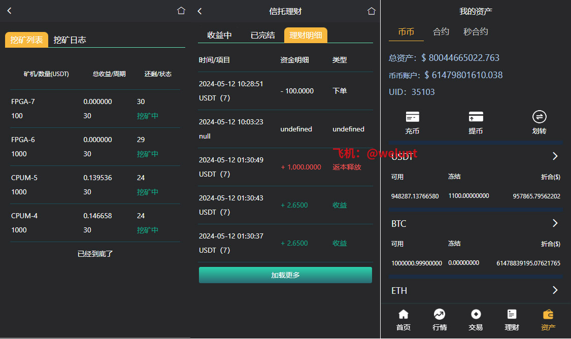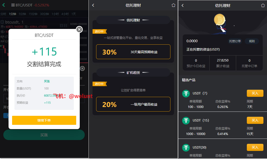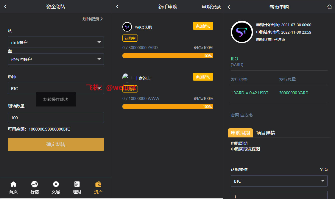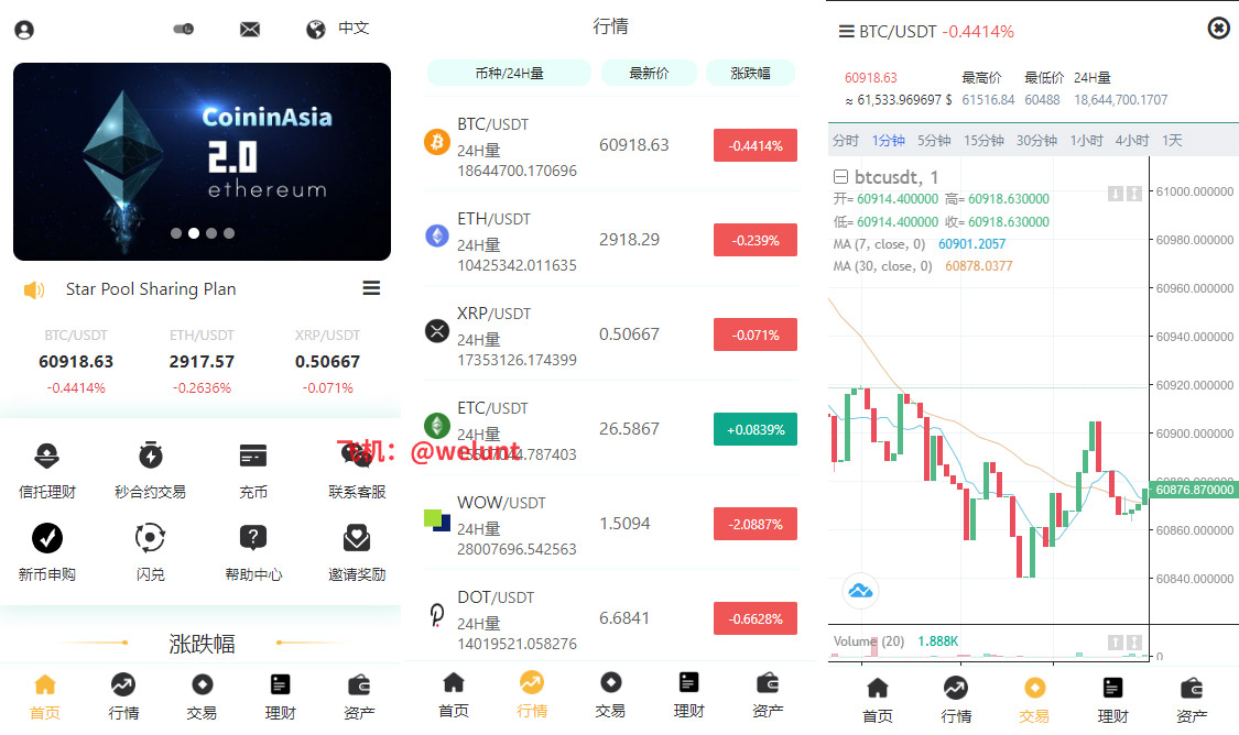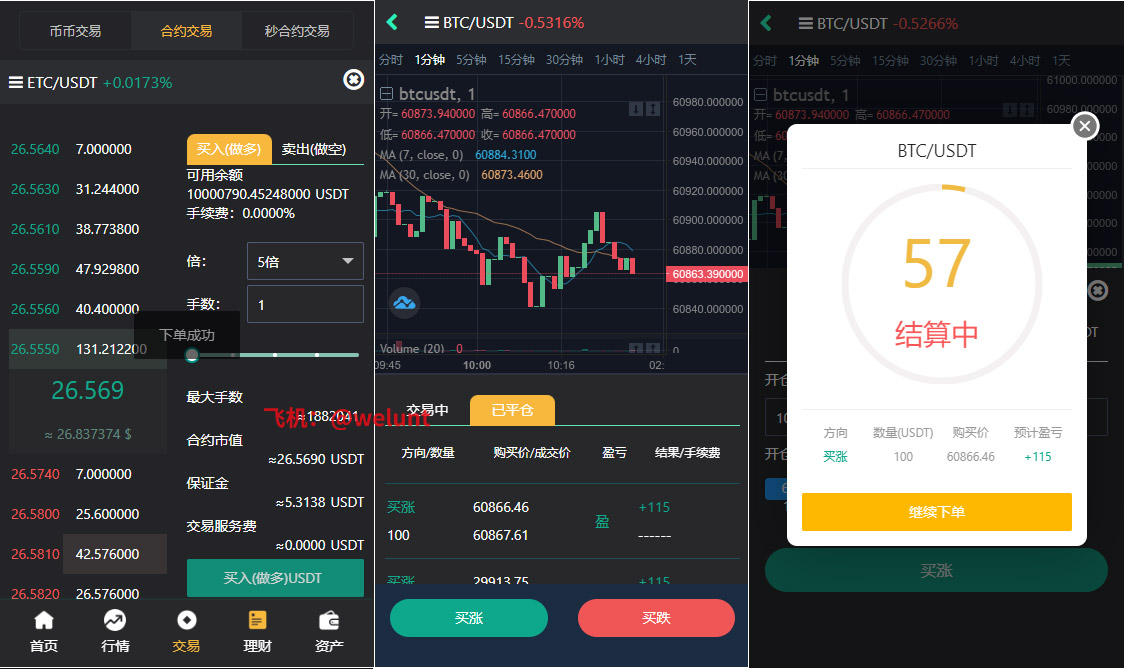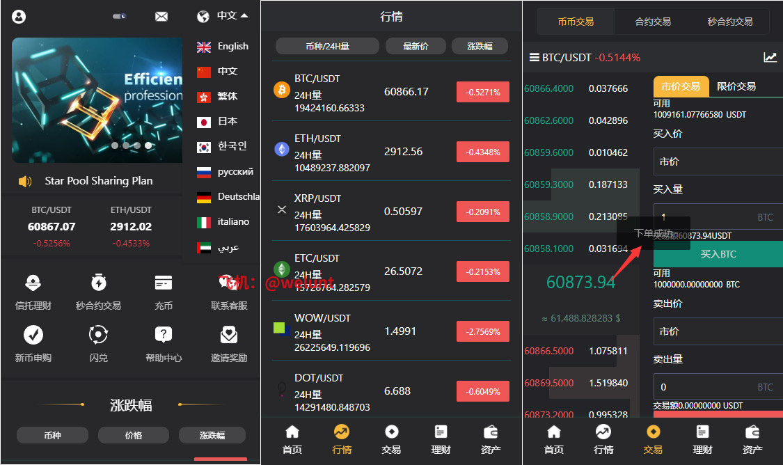 功能支持:币币交易、合约交易、秒合约交易、闪兑、借贷、理财、认购等
