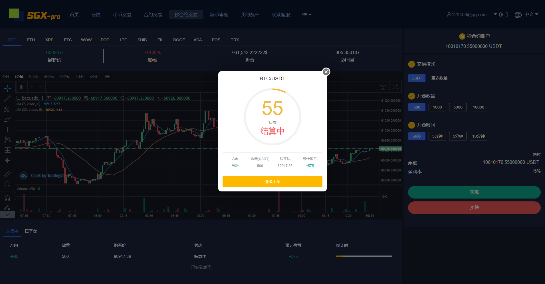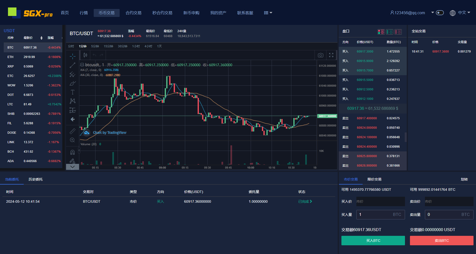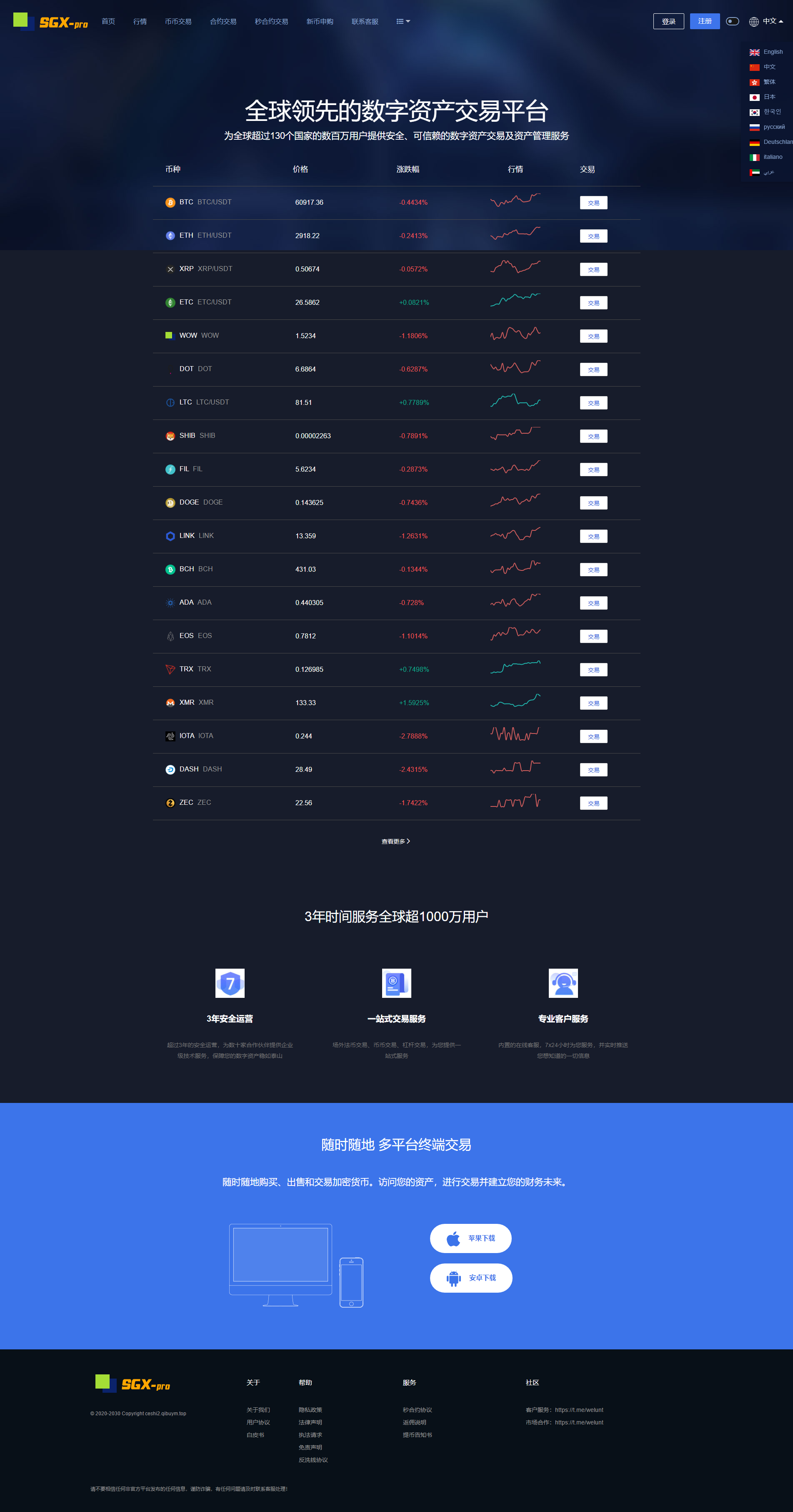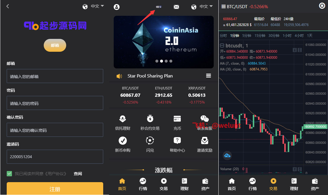 功能支持:币币交易、合约交易、秒合约交易、闪兑、借贷、理财、认购等