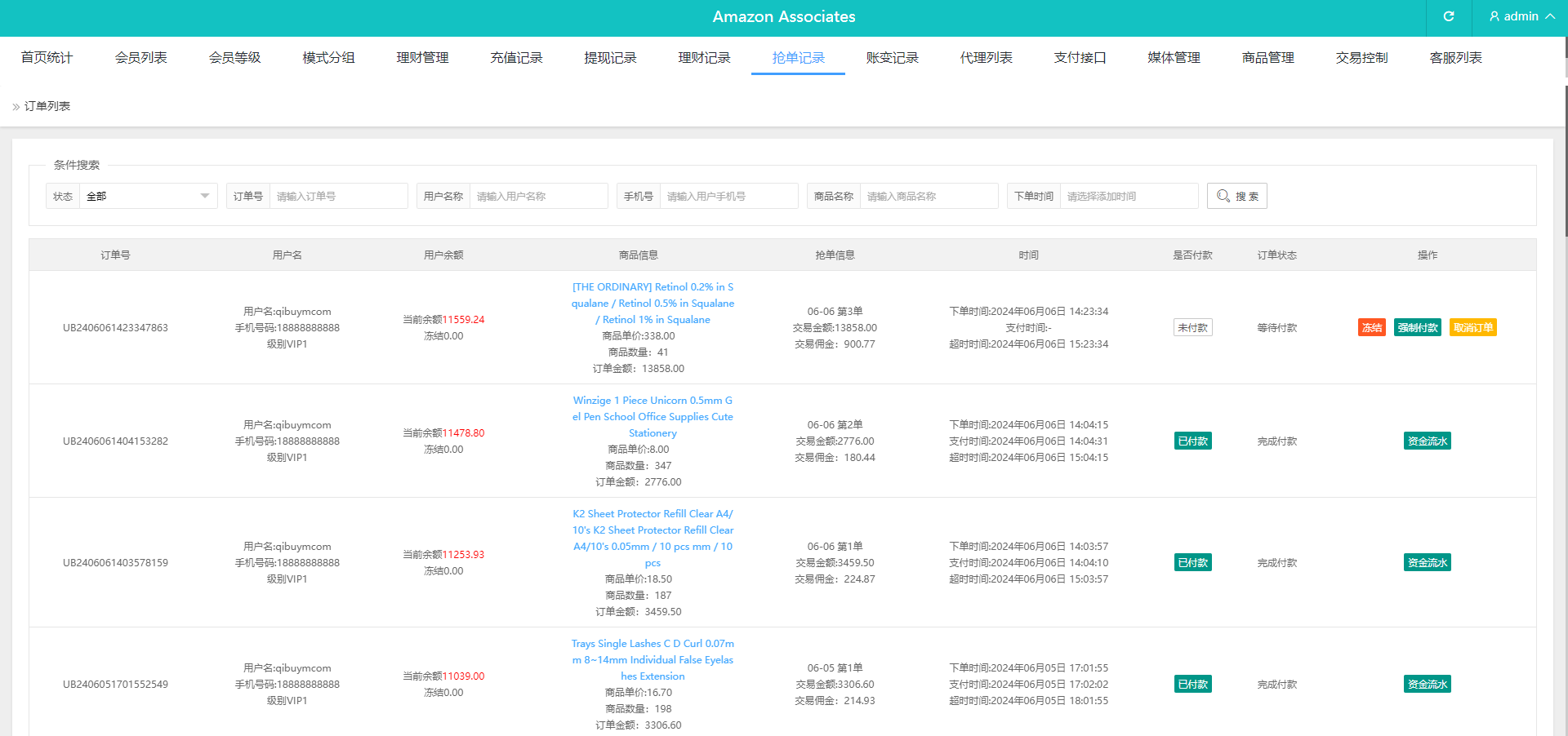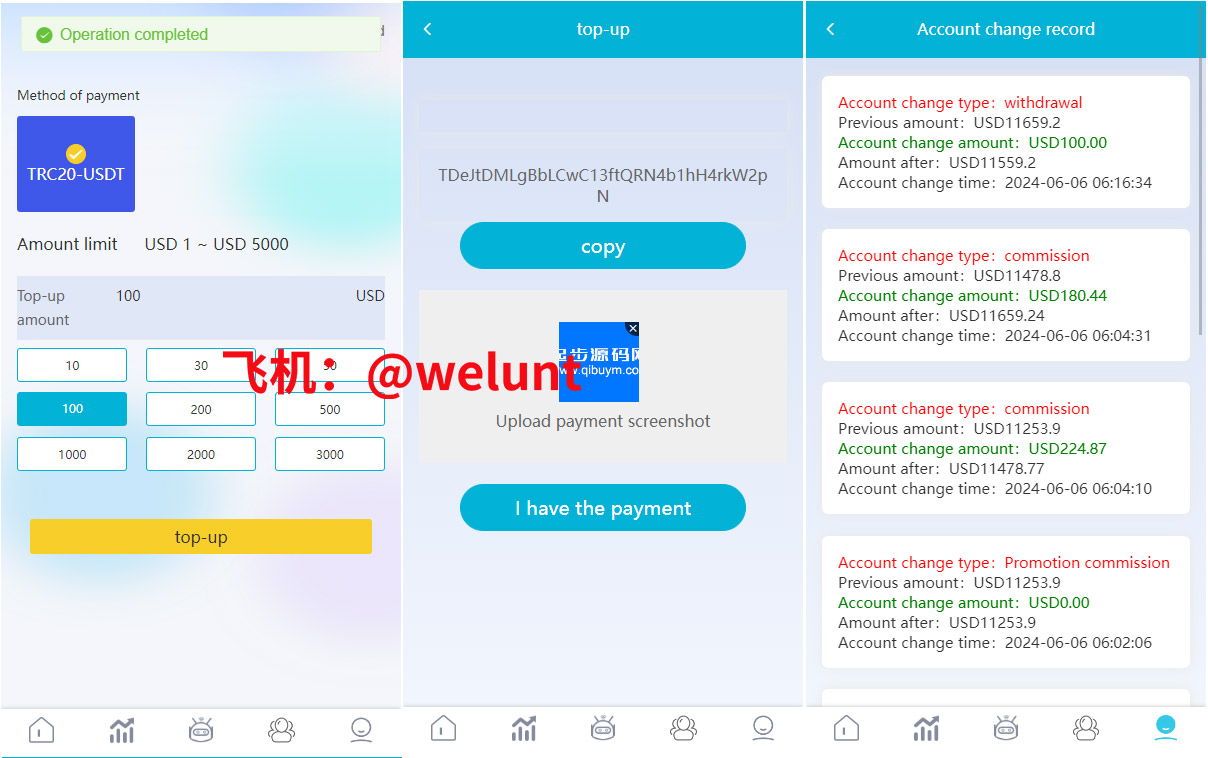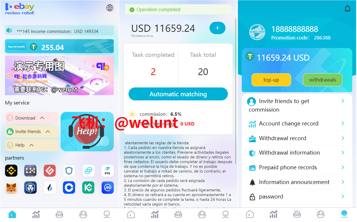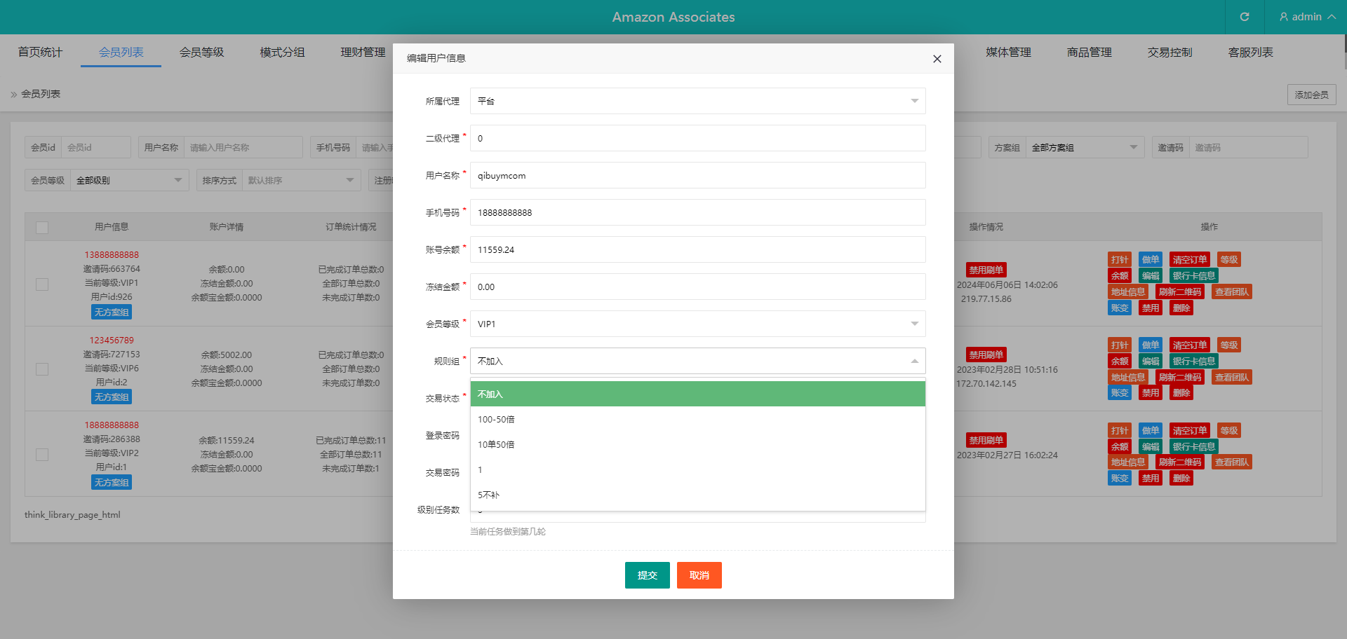 功能很全面带开启/禁止刷单模式,系统支持叠加组,打针等功能。usdt充值,权限代理后台