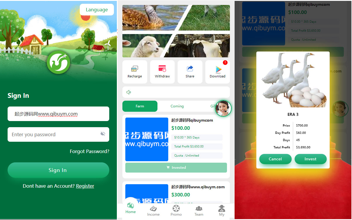 2024 最新海外农场养殖共享投资理财系统源码,USDT充值,内附搭建教程
