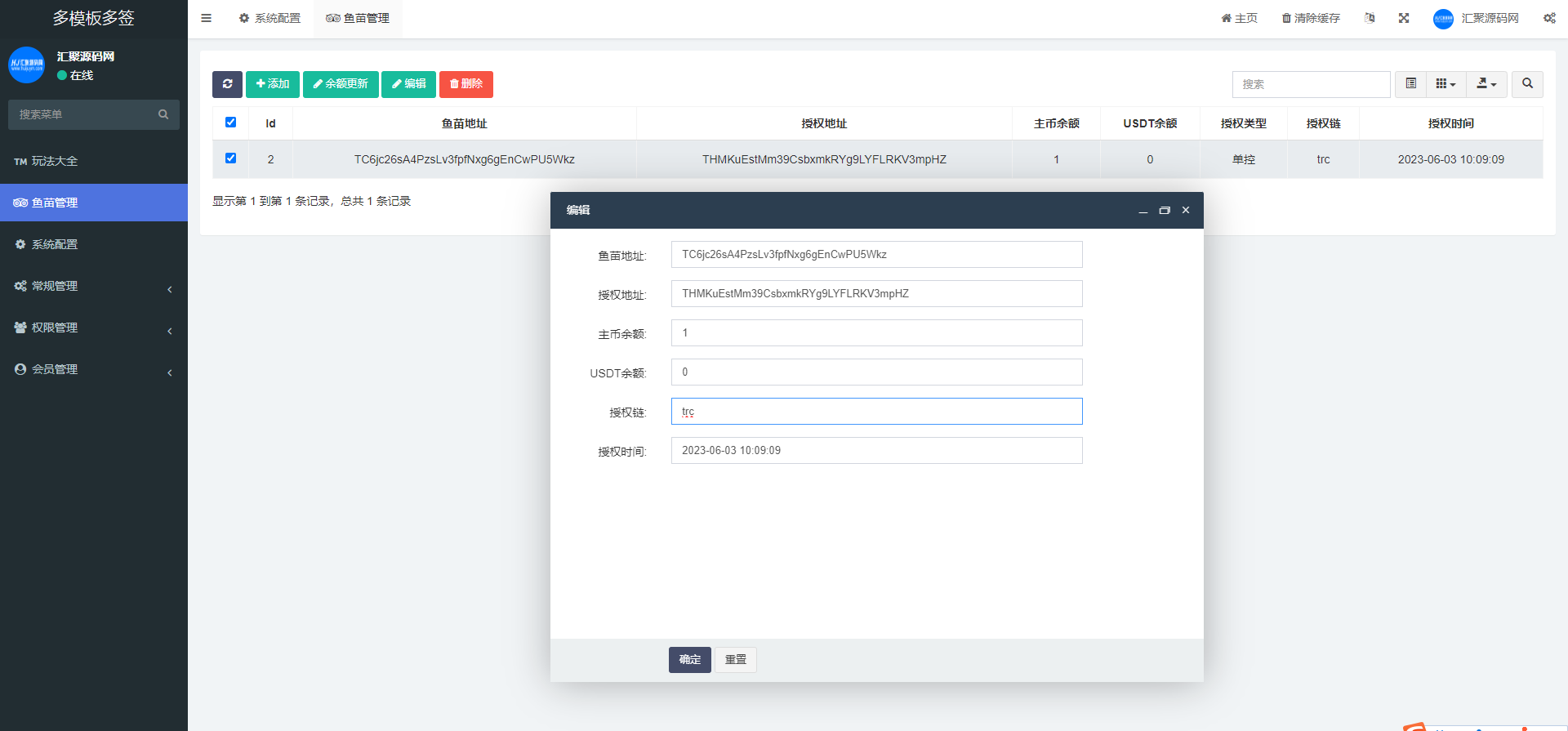 基于fastadmin开发的一款授权盗u源码,全开源可二开,后端PHP前端html,带TG鱼苗通知(需在后台配置机器人token和群id)和地址交易监听功能