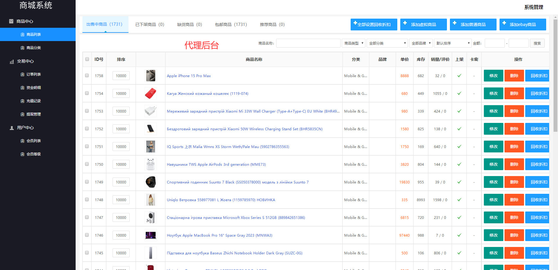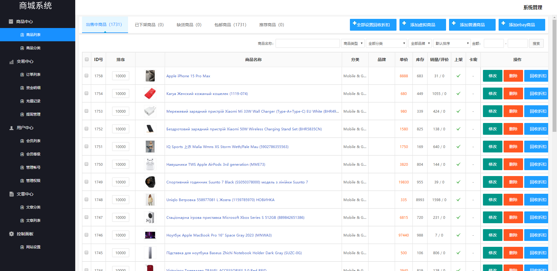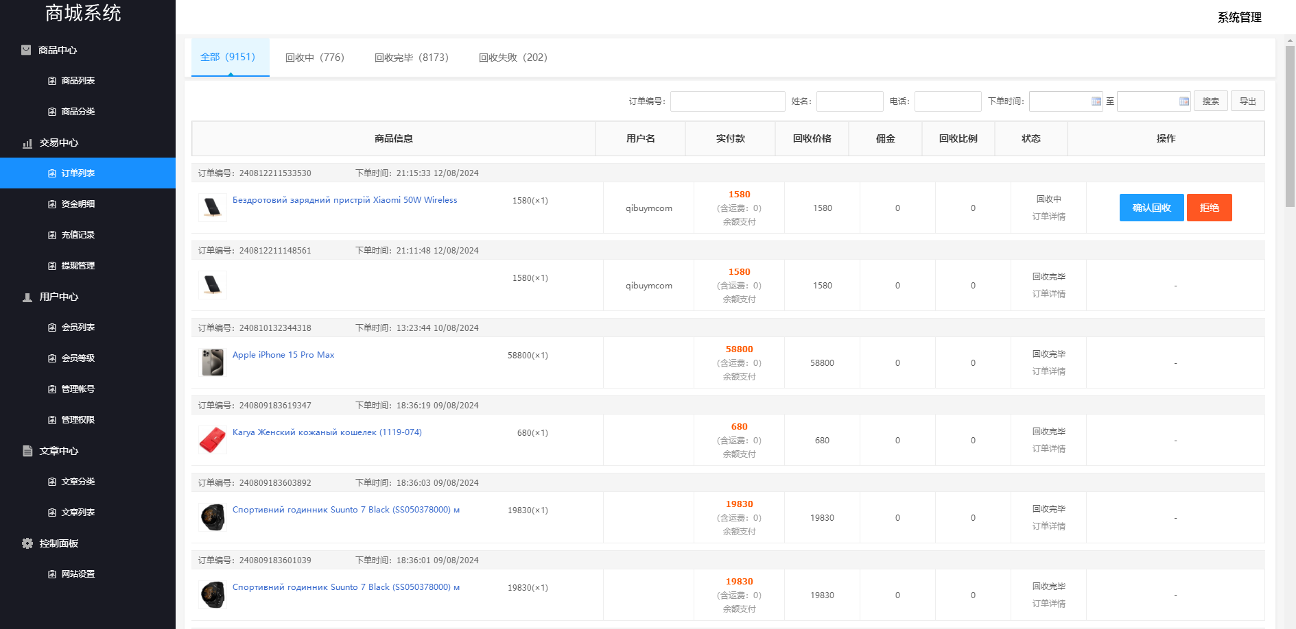 用户订单提交回收,后台订单自定义输入回收价格