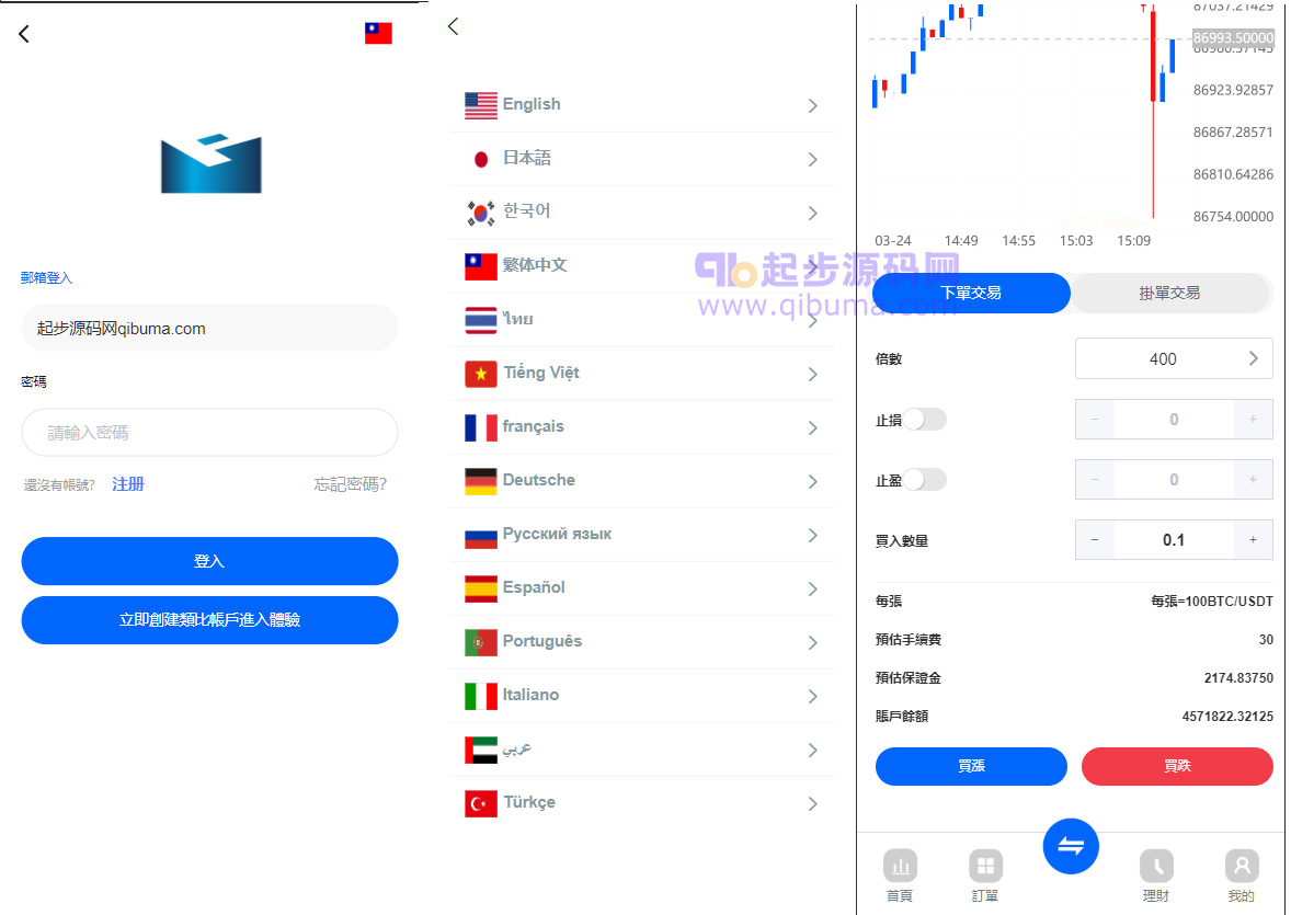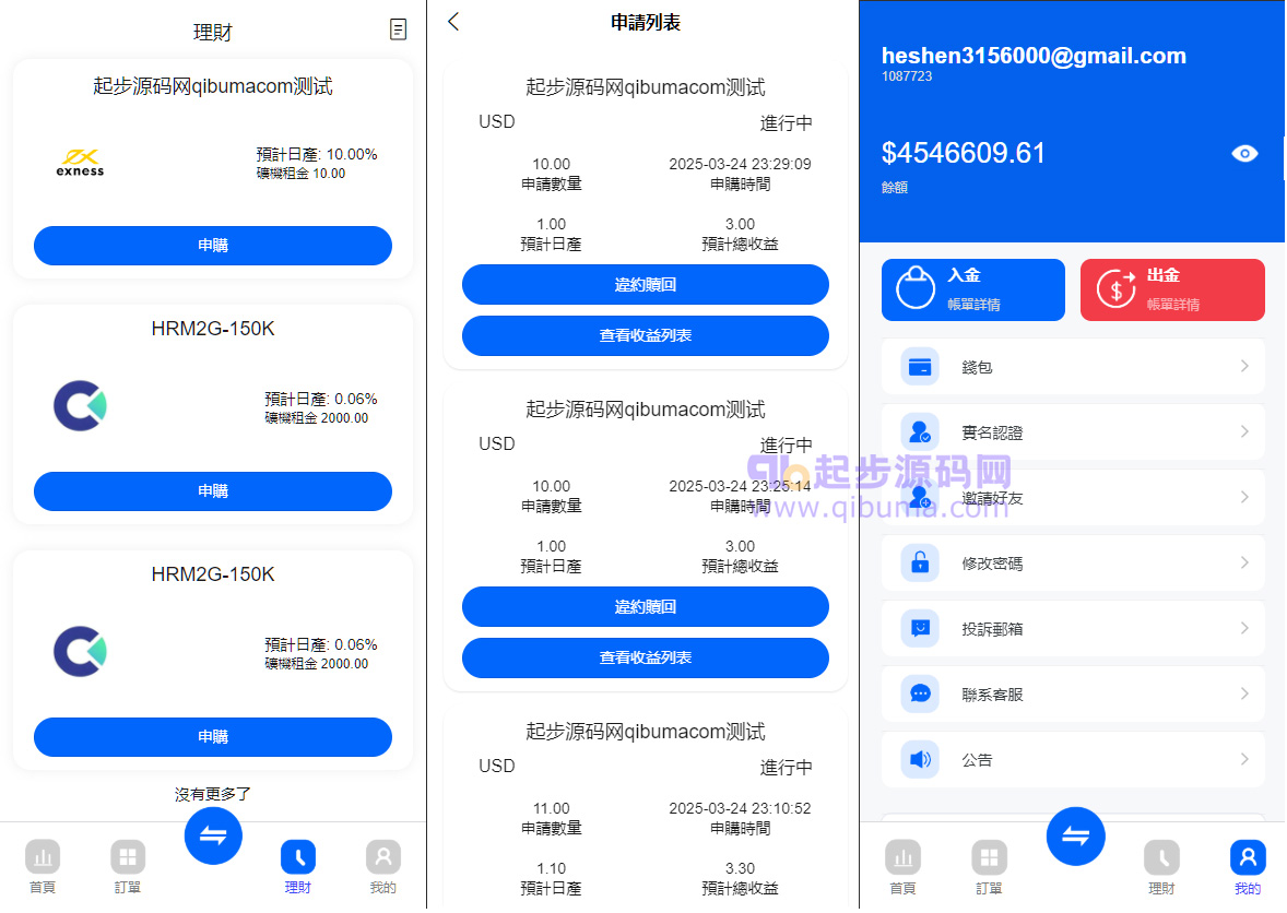 系统是fx7二开的新增PC端,手机端新增理财功能去除秒合约