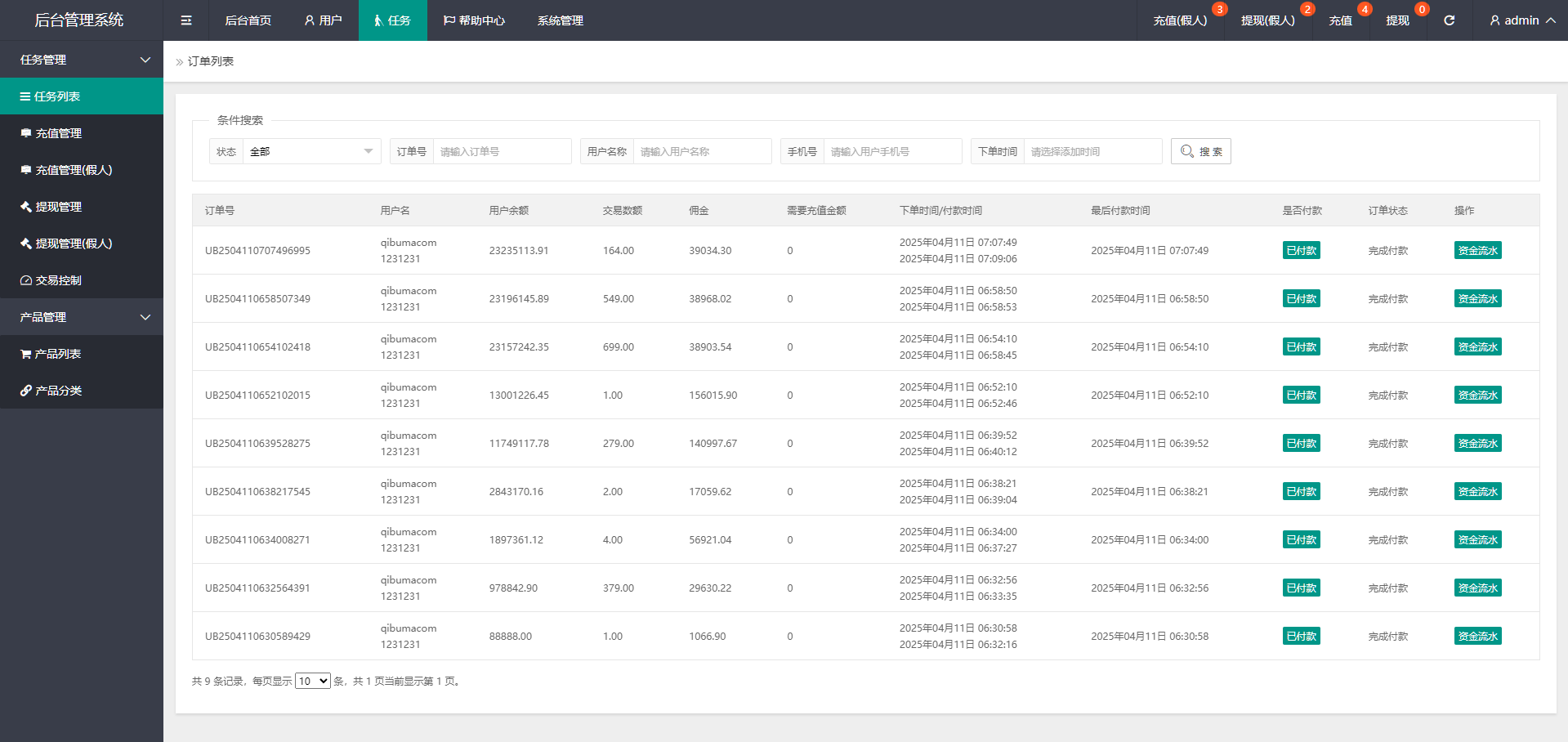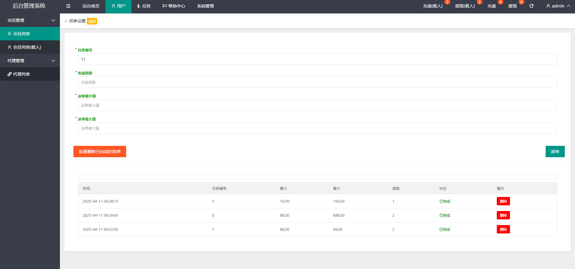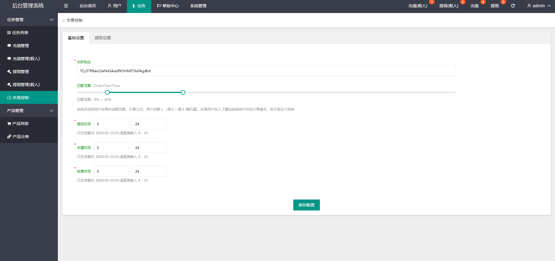 卡单控制(后台输入第几单开始卡单,输入佣金系数和派单金额区间,那么用户在这个卡单生效后,订单就会因为金额不足原因需要充值,可以多个数量)
