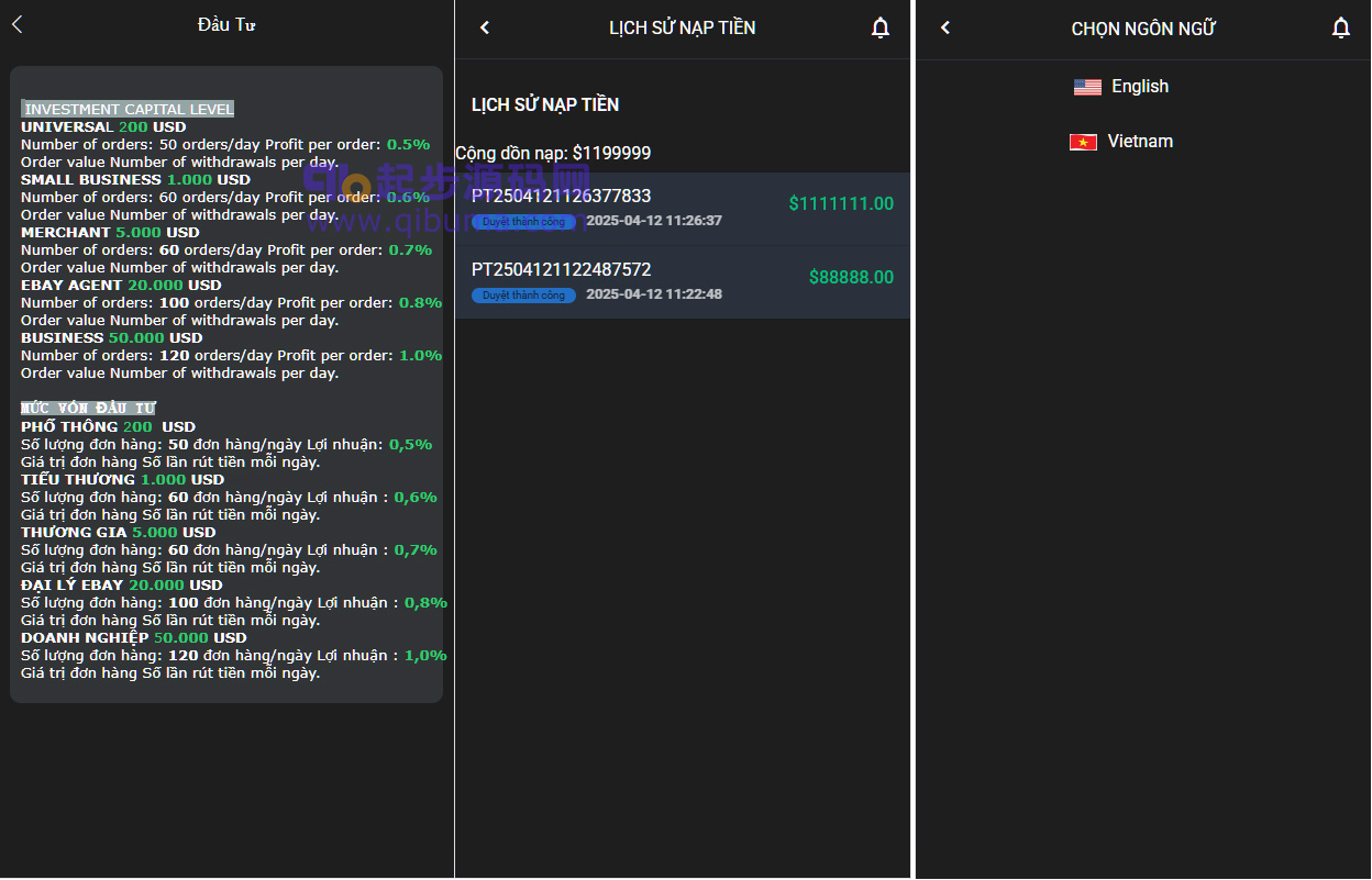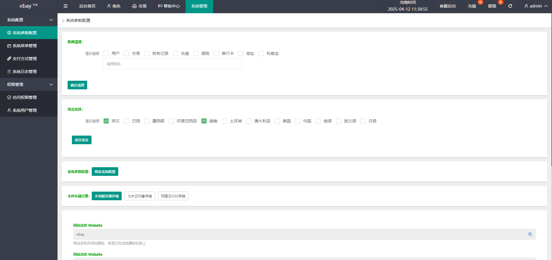 系统前端多语言后台可设置,但是语言包只有英文,越南语,可自行添加其他语言包。