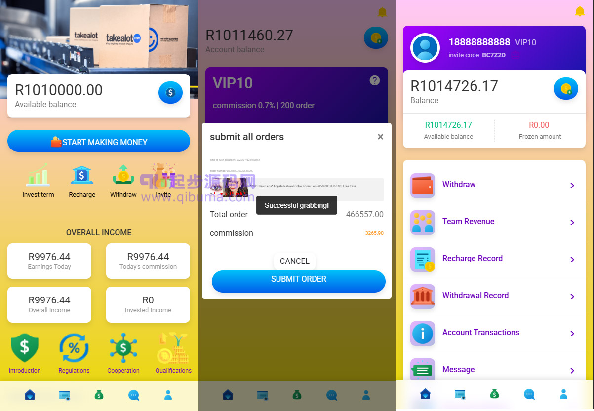 新UI海外抢单系统,支持打针,做单,余额宝等功能,内附搭建教程